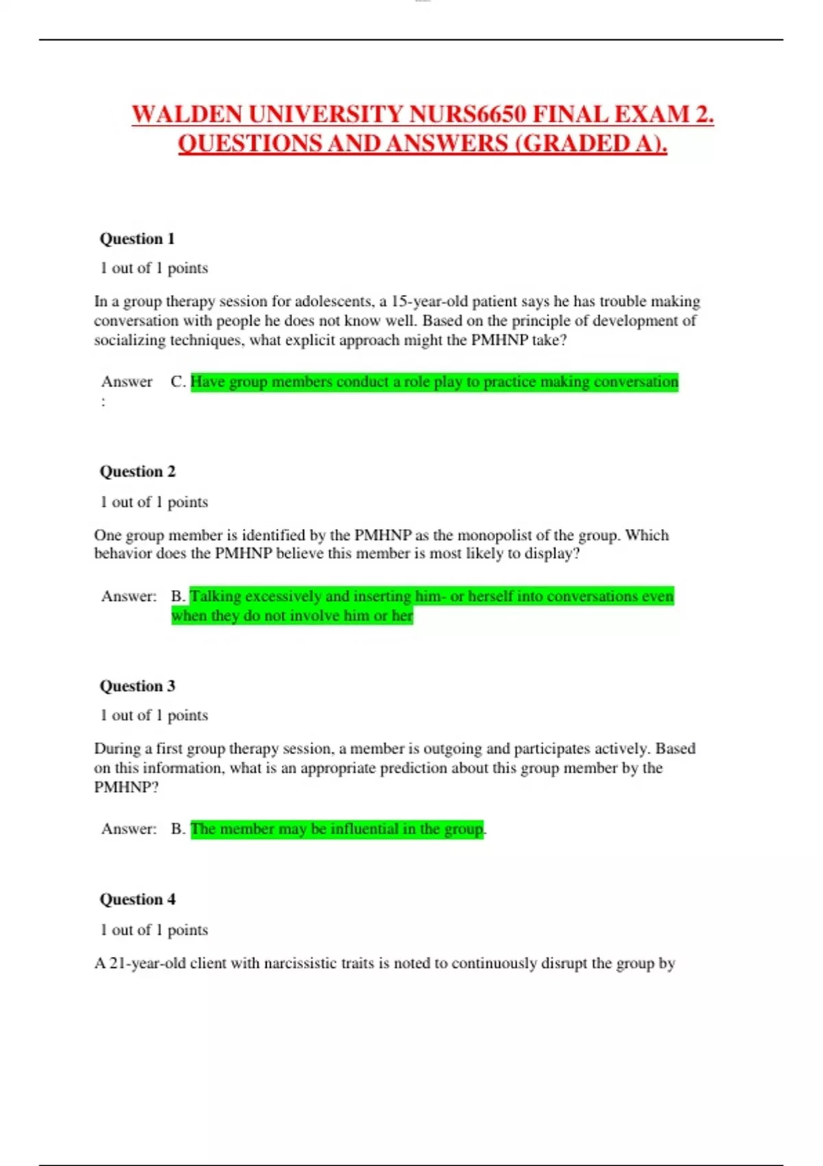 WALDEN UNIVERSITY NURS6650 FINAL EXAM 2. QUESTIONS AND ANSWERS (GRADED A).
