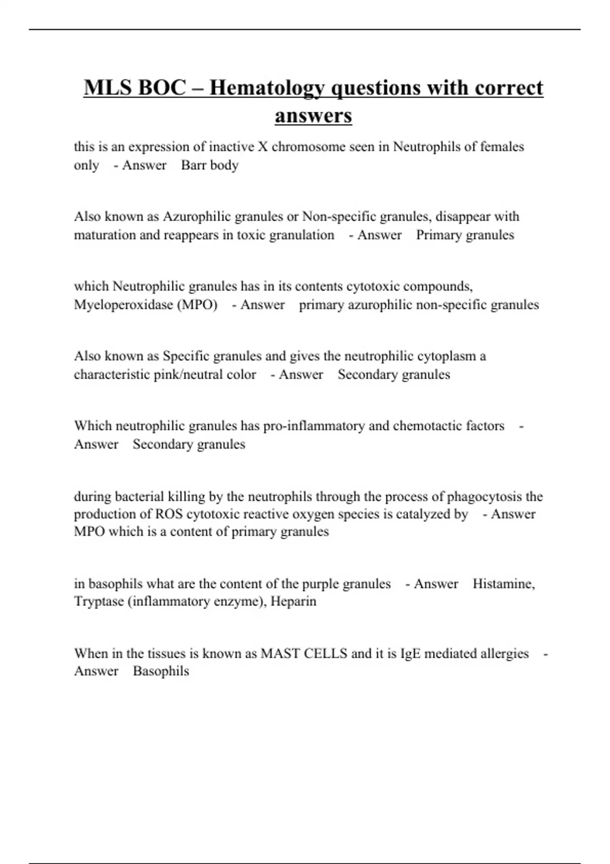 MLS BOC – Hematology questions with correct answers