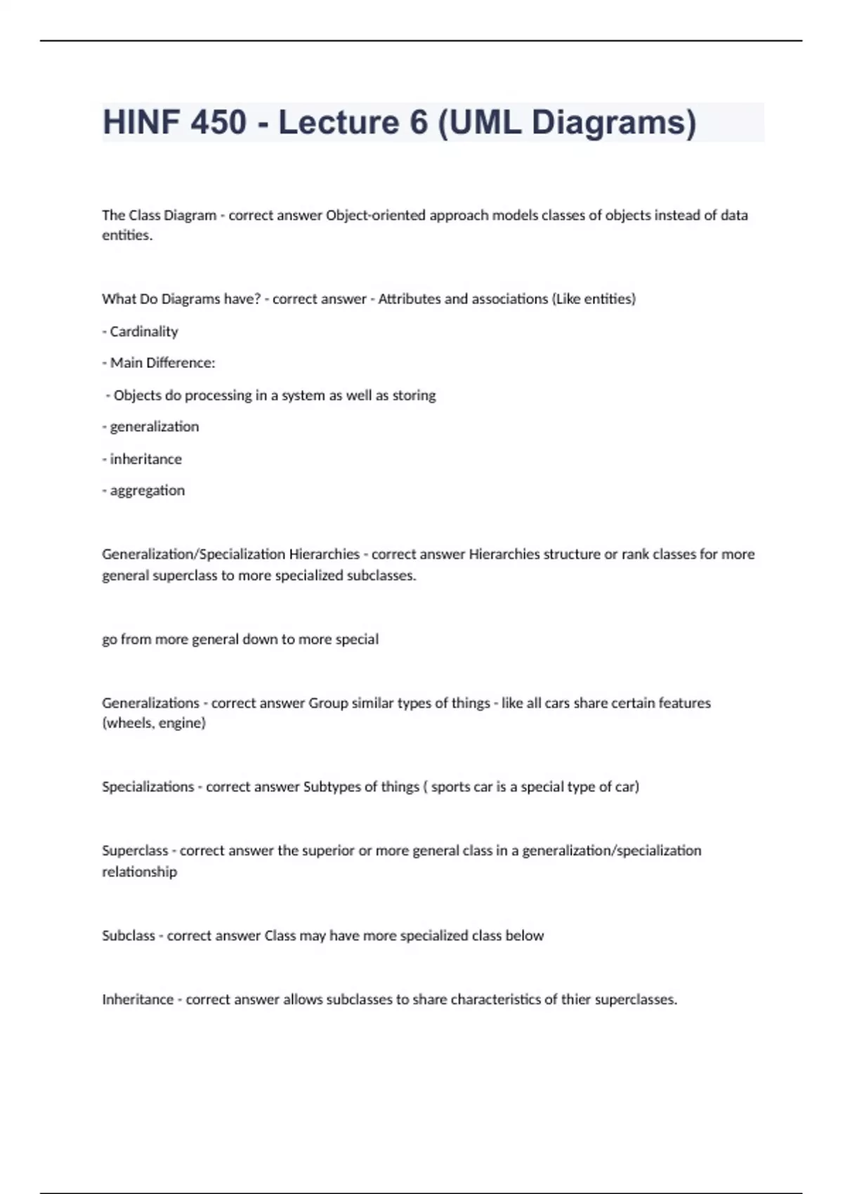 HINF 450 - Lecture 6 (UML Diagrams) question well answers 2023