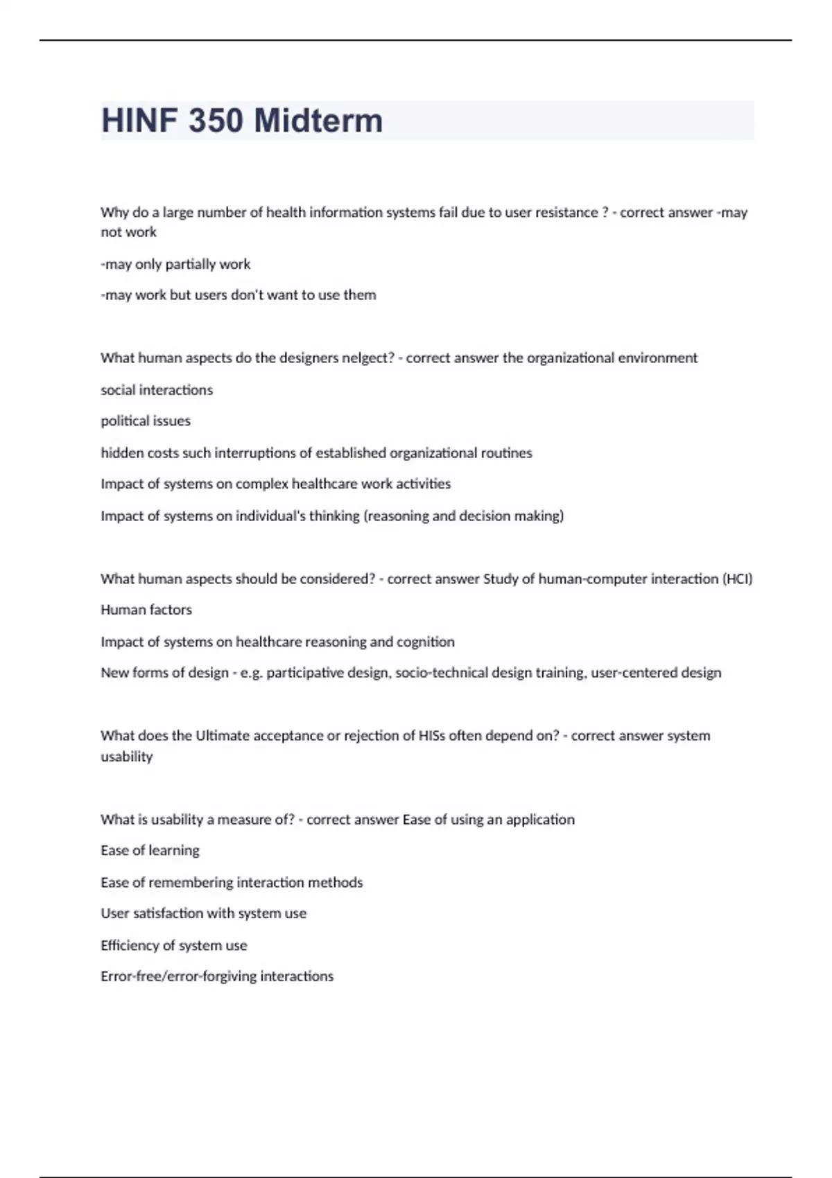 Exam of 31 pages for the course HINF at HINF (HINF 350 Midterm)