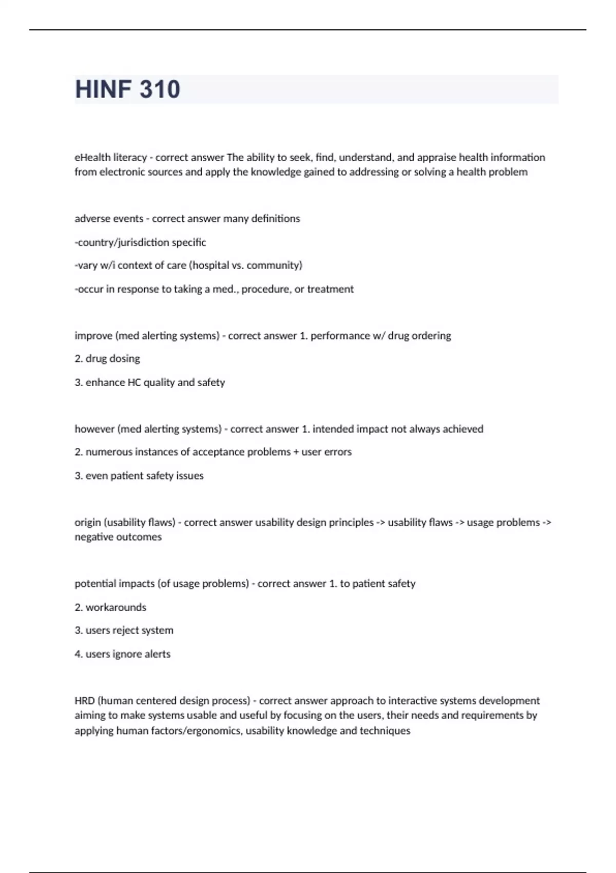 Exam of 13 pages for the course HINF at HINF (HINF 310 1)