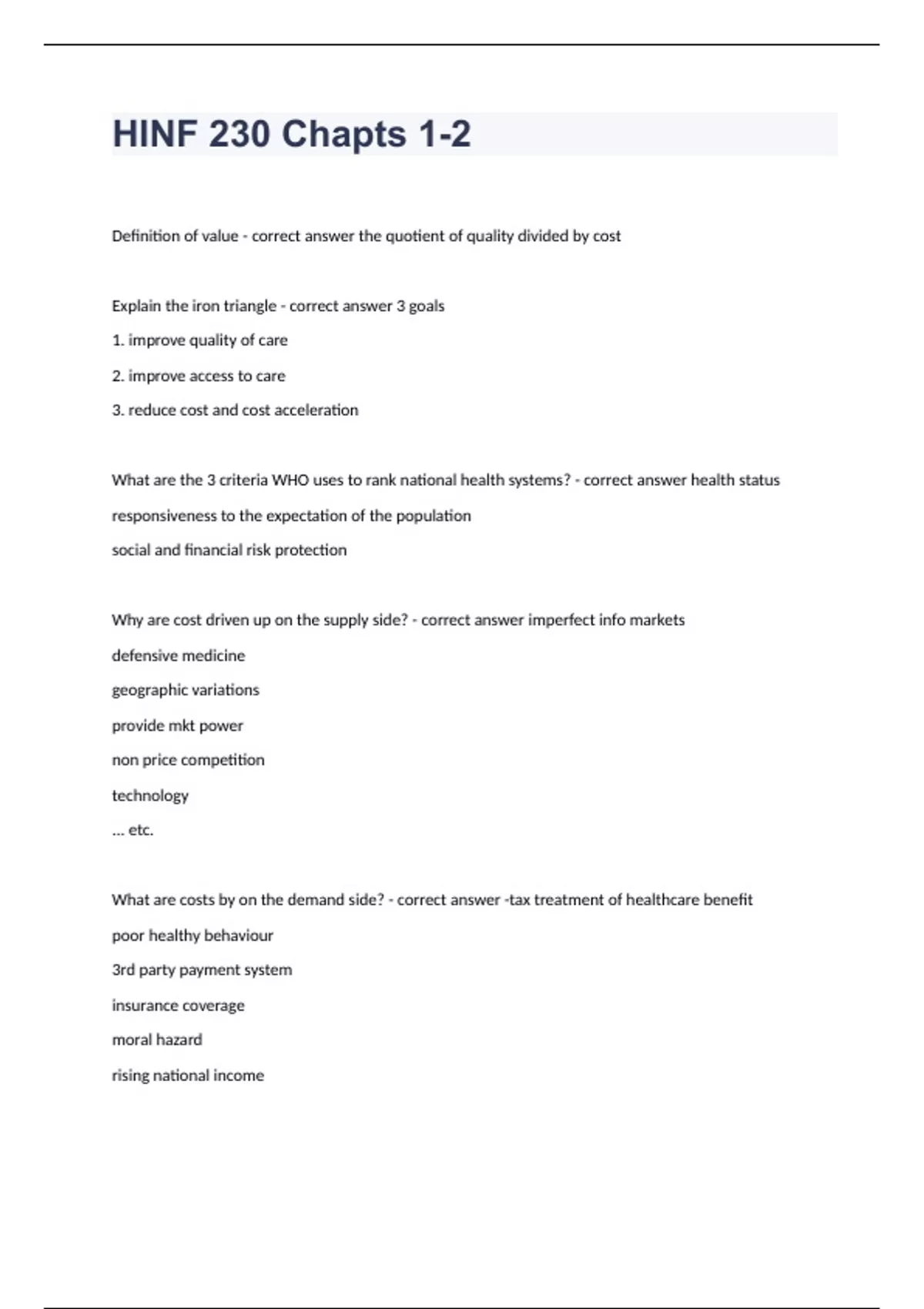 hinf 230 chapts 1 question well answered 2023 pass
