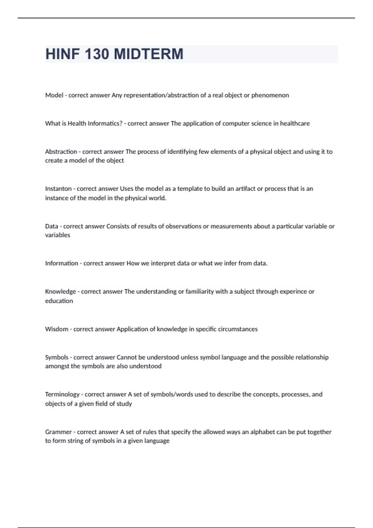 HINF 130 MIDTERM questions well answered graded A+ 2023