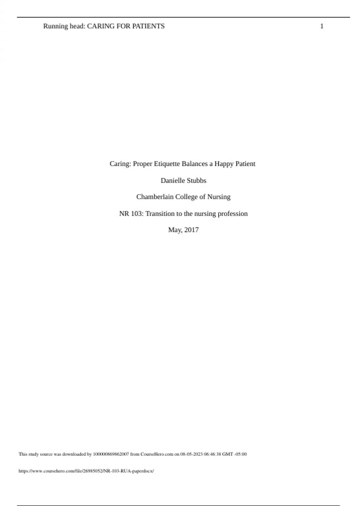 NR 103 Chamberlain College of Nursing Complete Course Materials