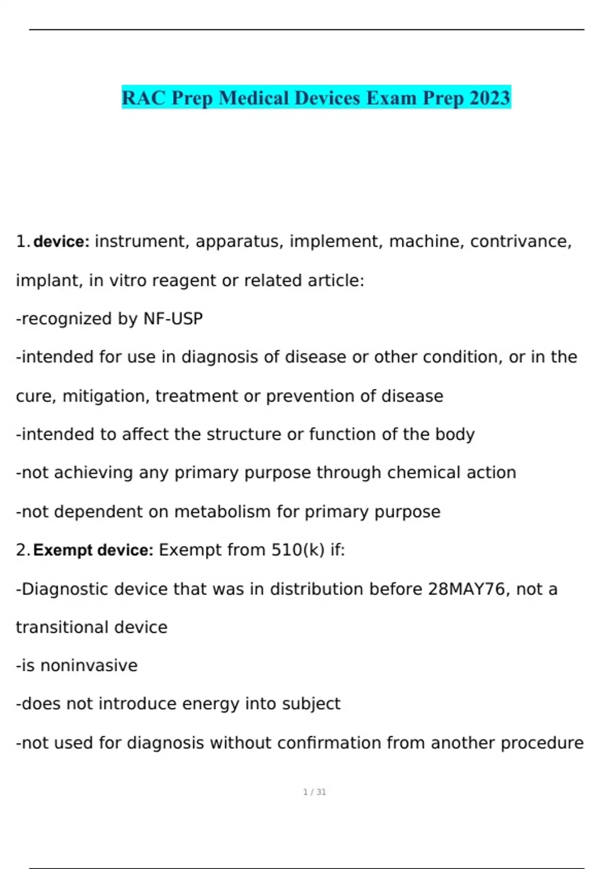 RAC Prep Medical Devices Exam Prep 2023 with complete solution