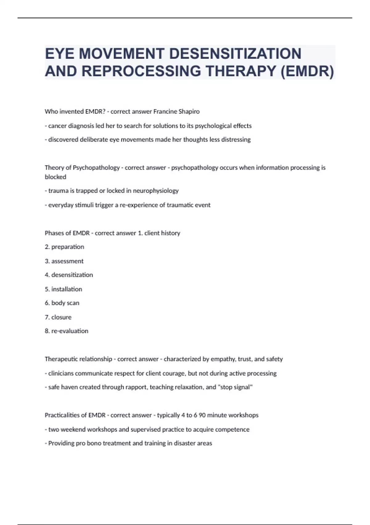 EYE MOVEMENT DESENSITIZATION AND REPROCESSING THERAPY 1 2023 updated to pass