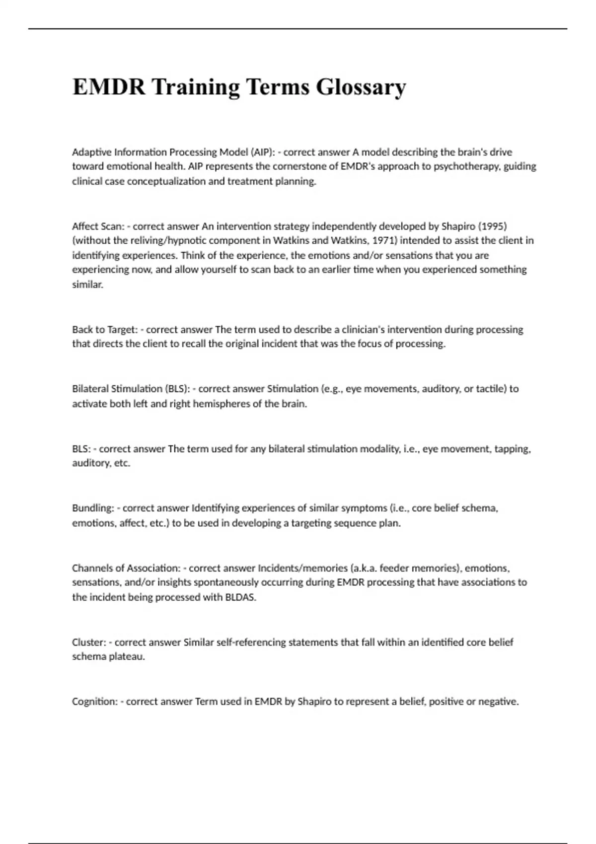 EMDR Training Terms Glossary.