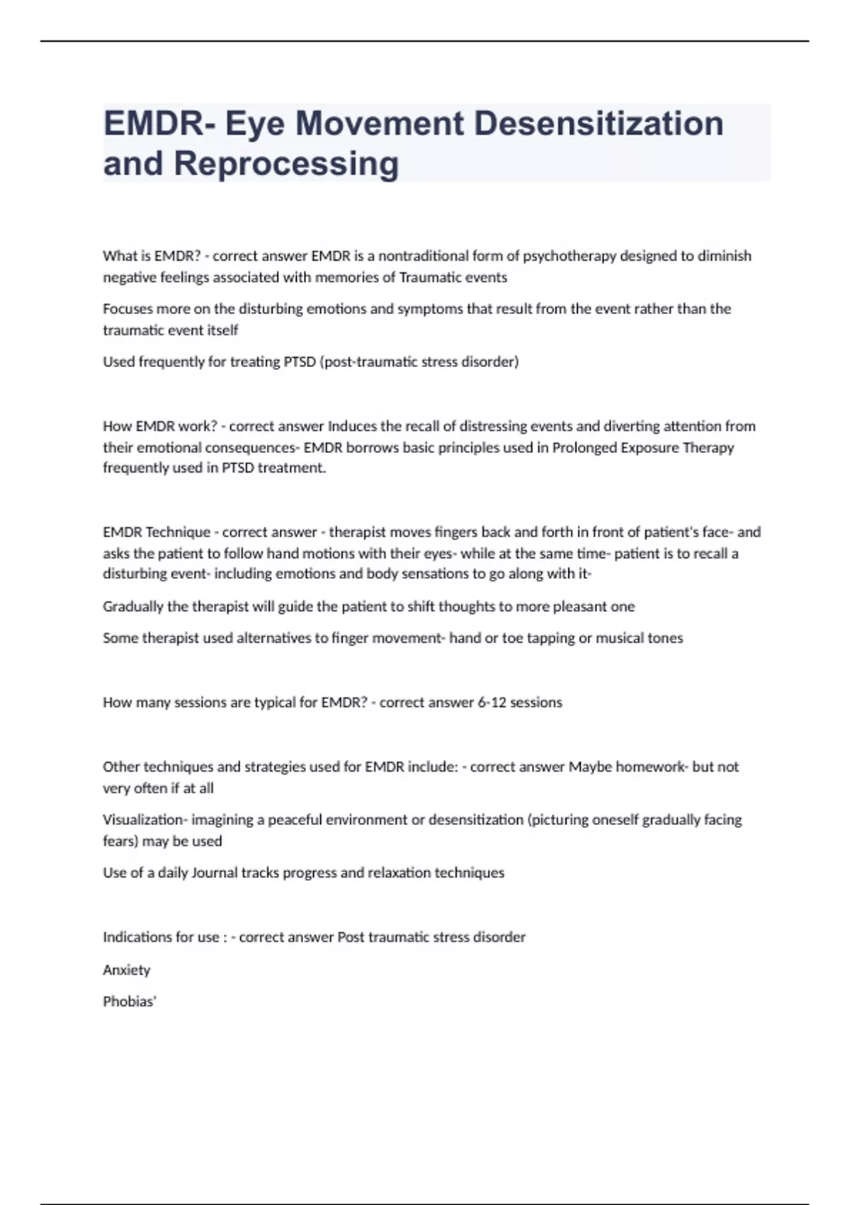 EMDR- Eye Movement Desensitization and Reprocessing fully solved 2023 verified