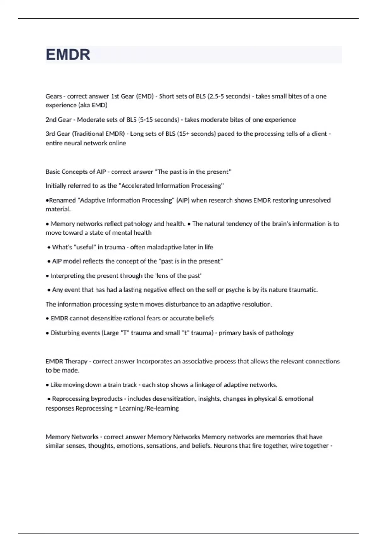 Exam of 4 pages for the course EMDR at EMDR (EMDR 6)