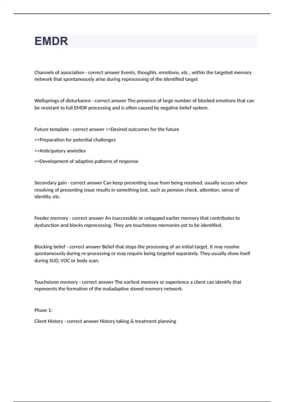 Exam of 12 pages for the course EMDR at EMDR (EMDR 4)