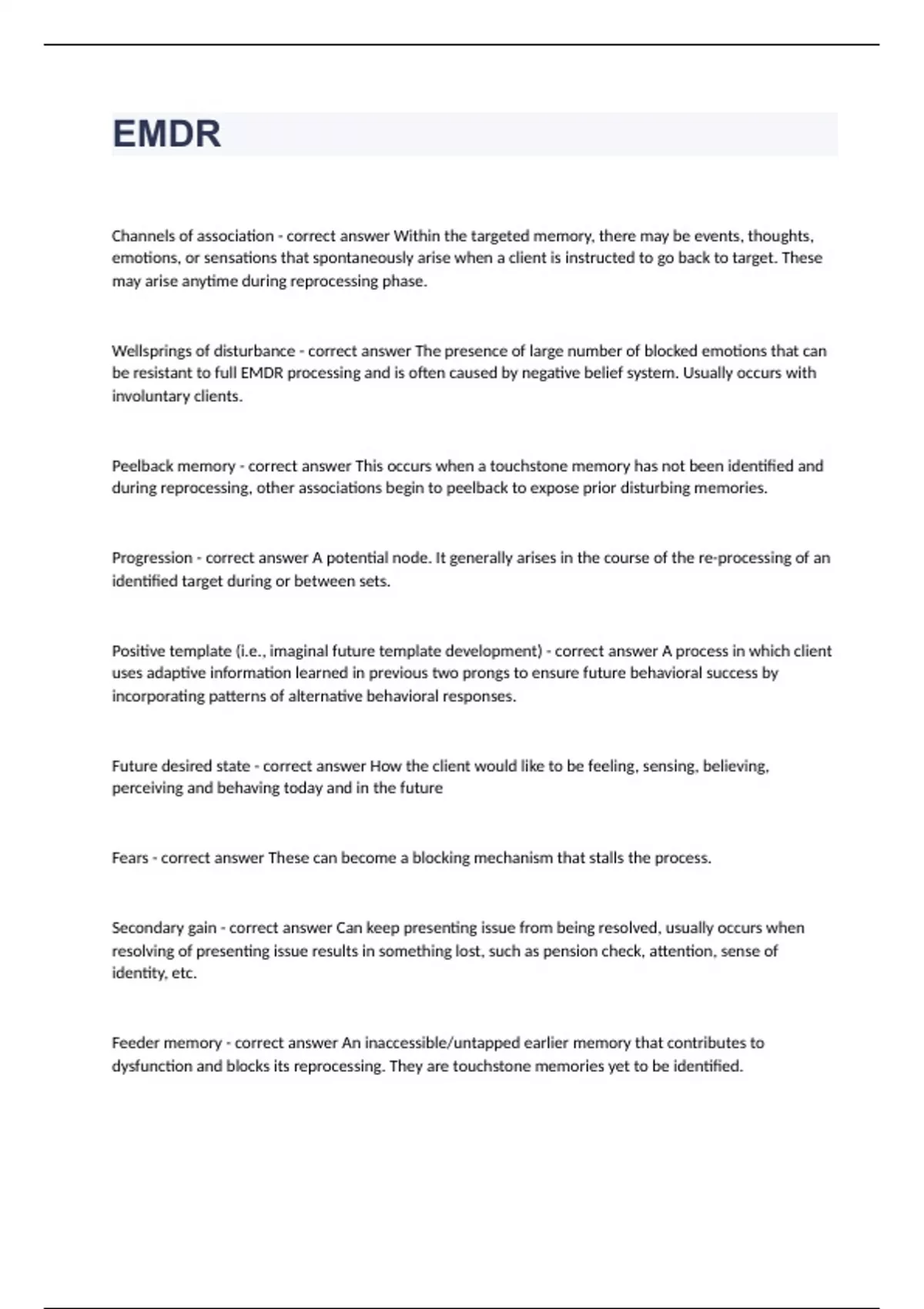 Exam of 11 pages for the course EMDR at EMDR (EMDR 3.)