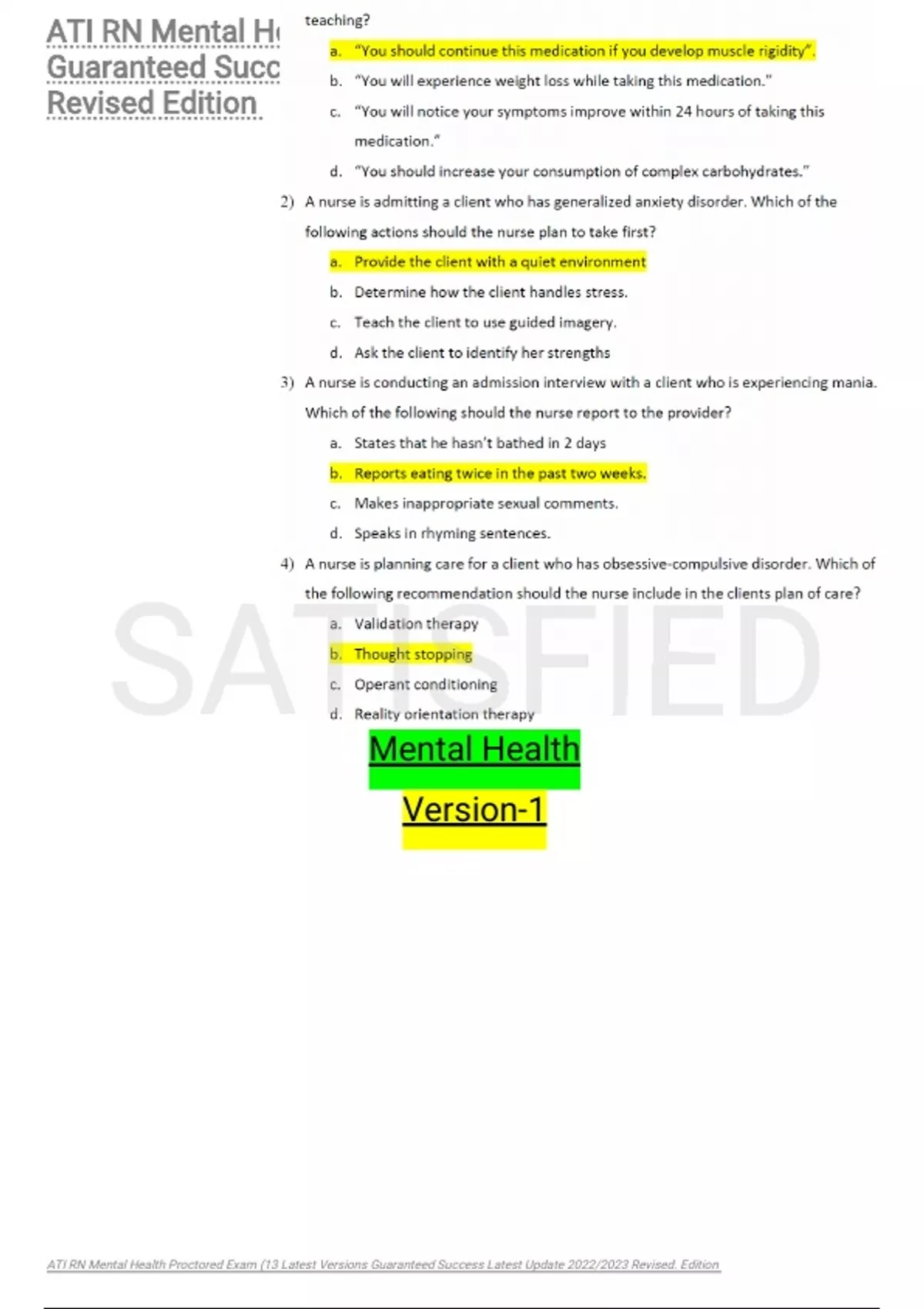 ATIRNMentalHealthProctoredExam(13LatestVersionsGuaranteedSuccessLatestUpdate2022/2023Revised.Edition