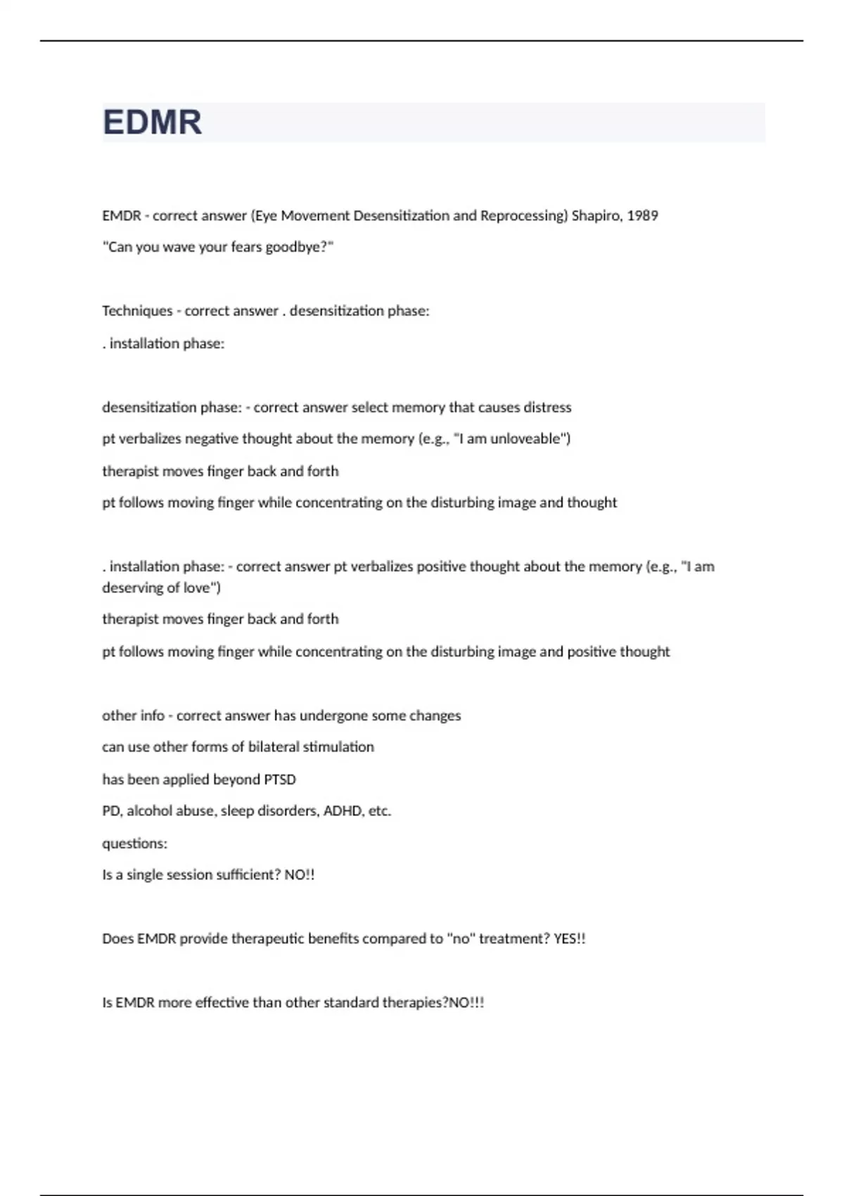 Exam of 2 pages for the course EMDR at EMDR (EDMR 8)