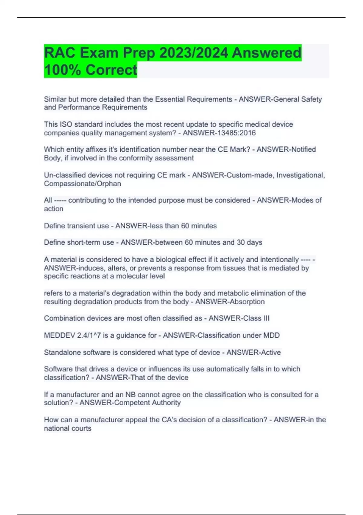 RAC Exam Prep 2023/2024 Answered 100% Correct