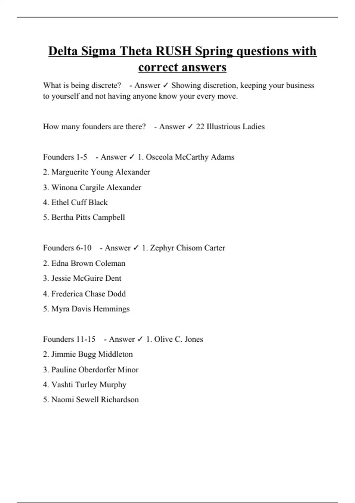 Delta Sigma Theta RUSH Spring questions with correct answers