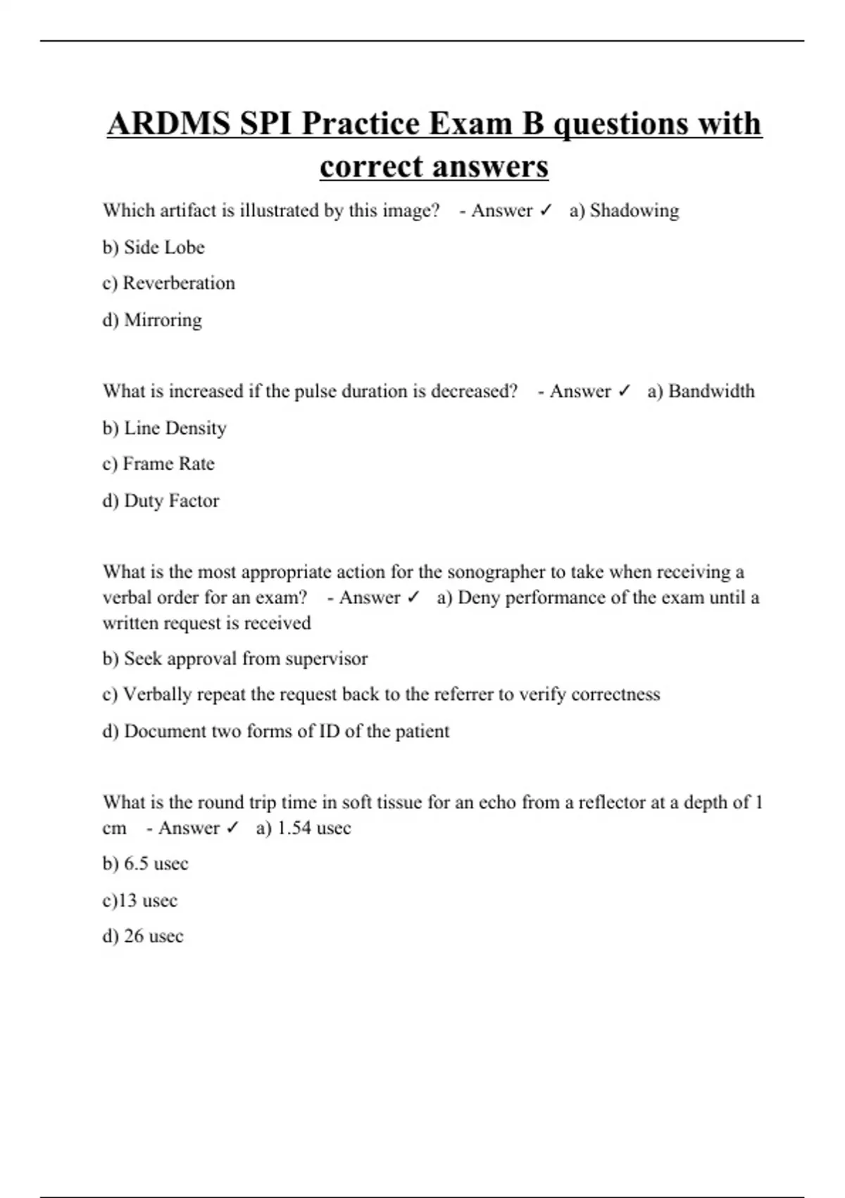 ardms spi practice exam b questions with correct a