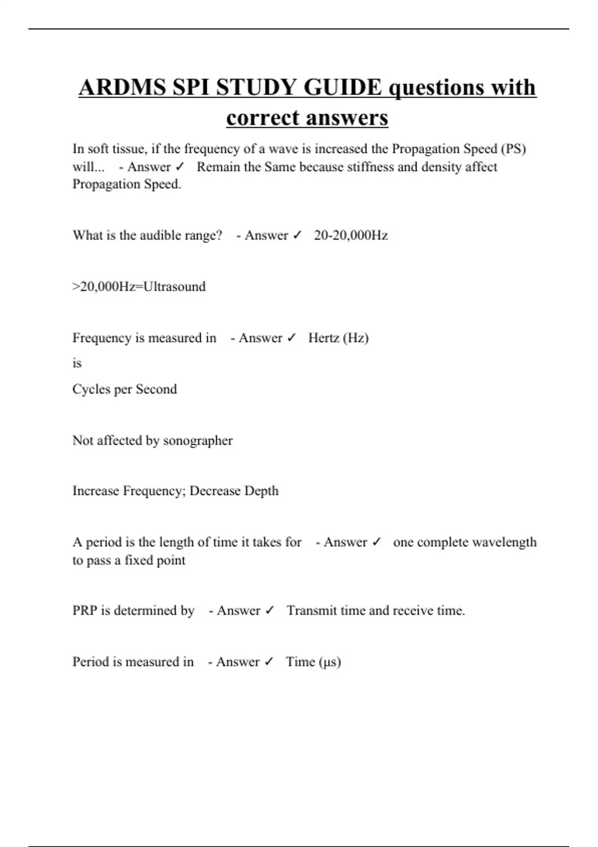 ARDMS SPI STUDY GUIDE questions with correct answers