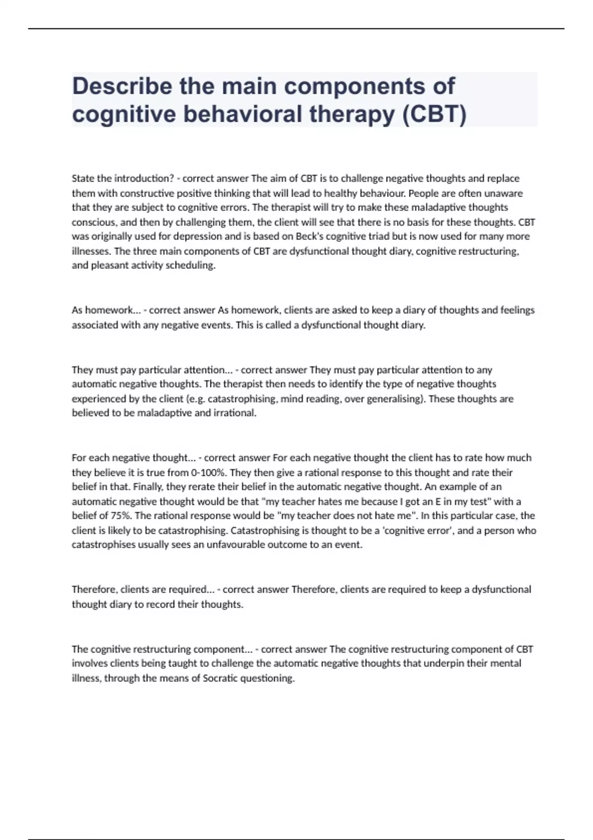 Describe the main components of cognitive behavioral therapy. 2023 passed