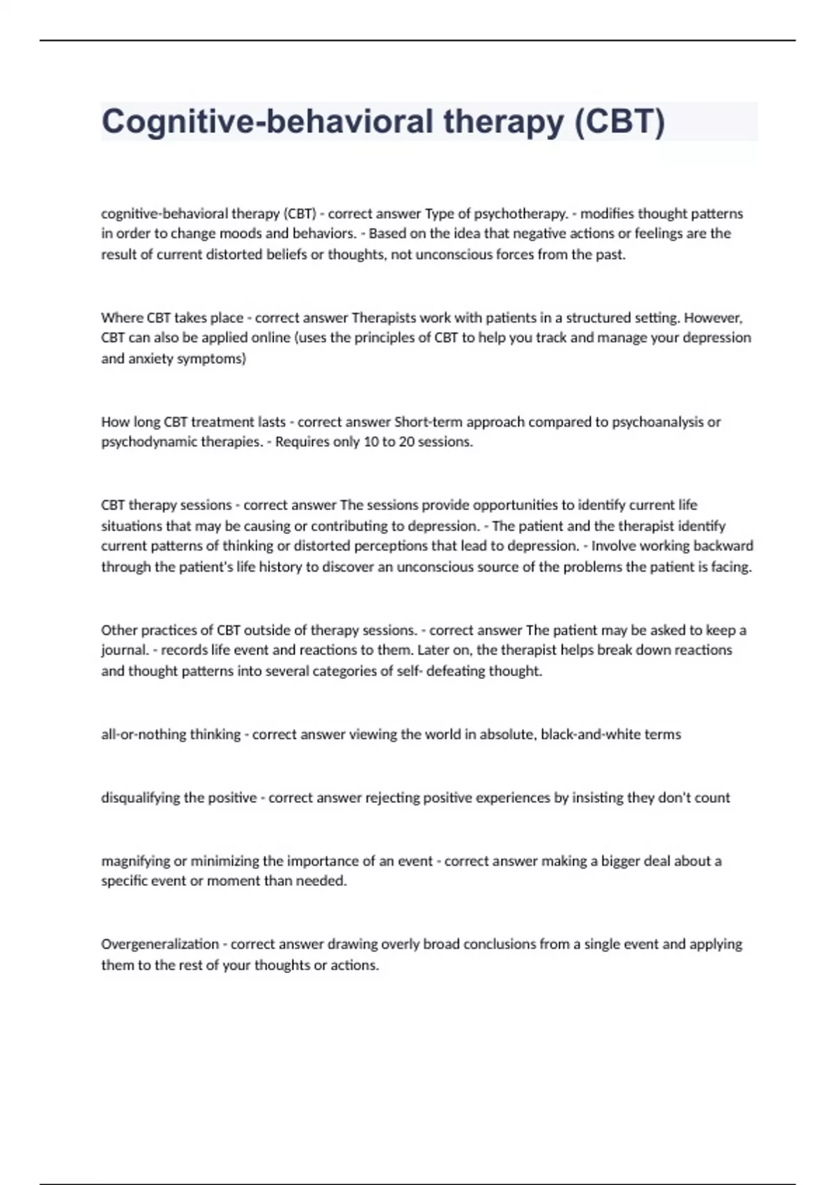 CBT therapy sessions - correct answer The sessions provide opportunities to identify current life