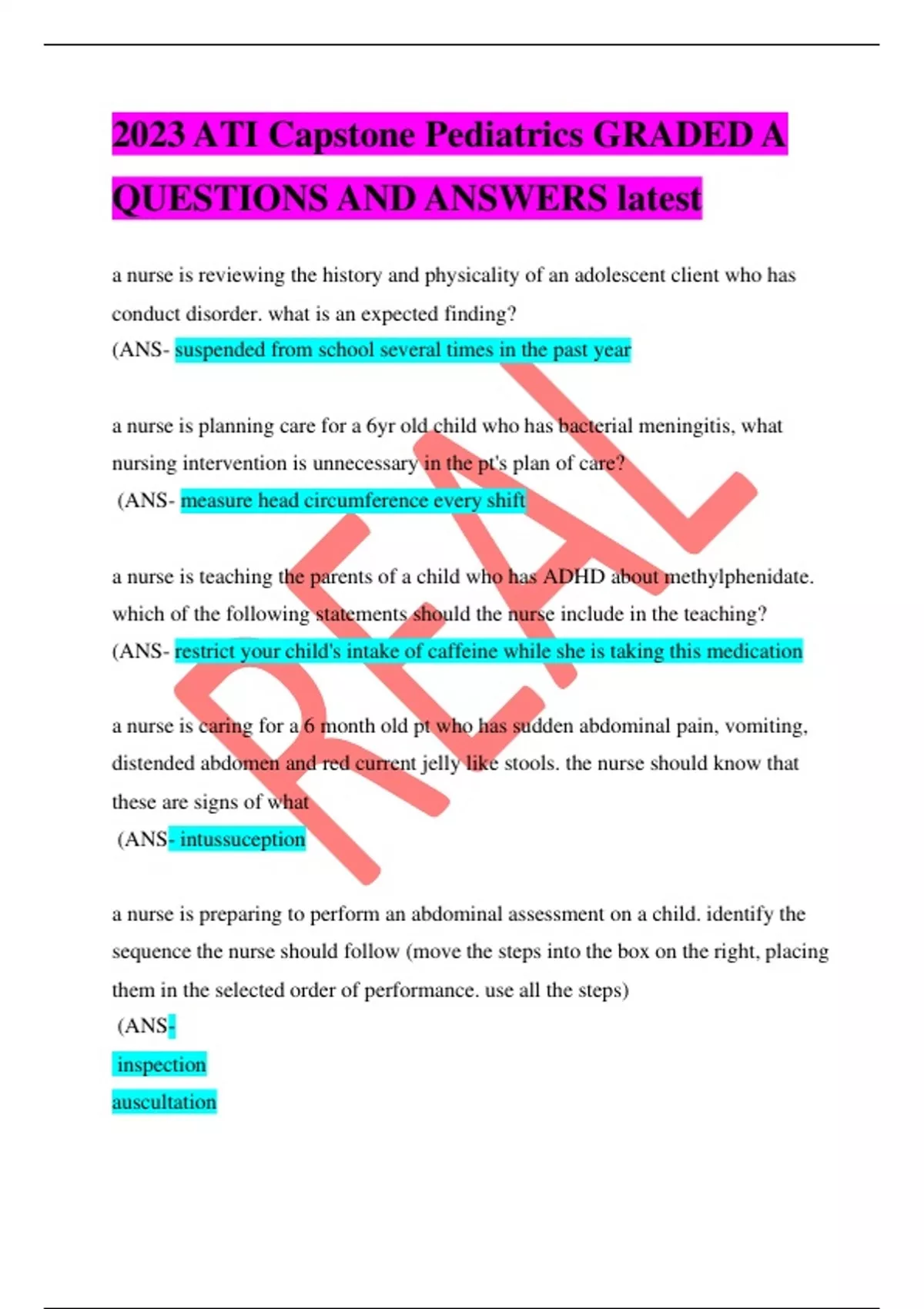 2023 ATI Capstone Pediatrics GRADED A QUESTIONS AND ANSWERS latest