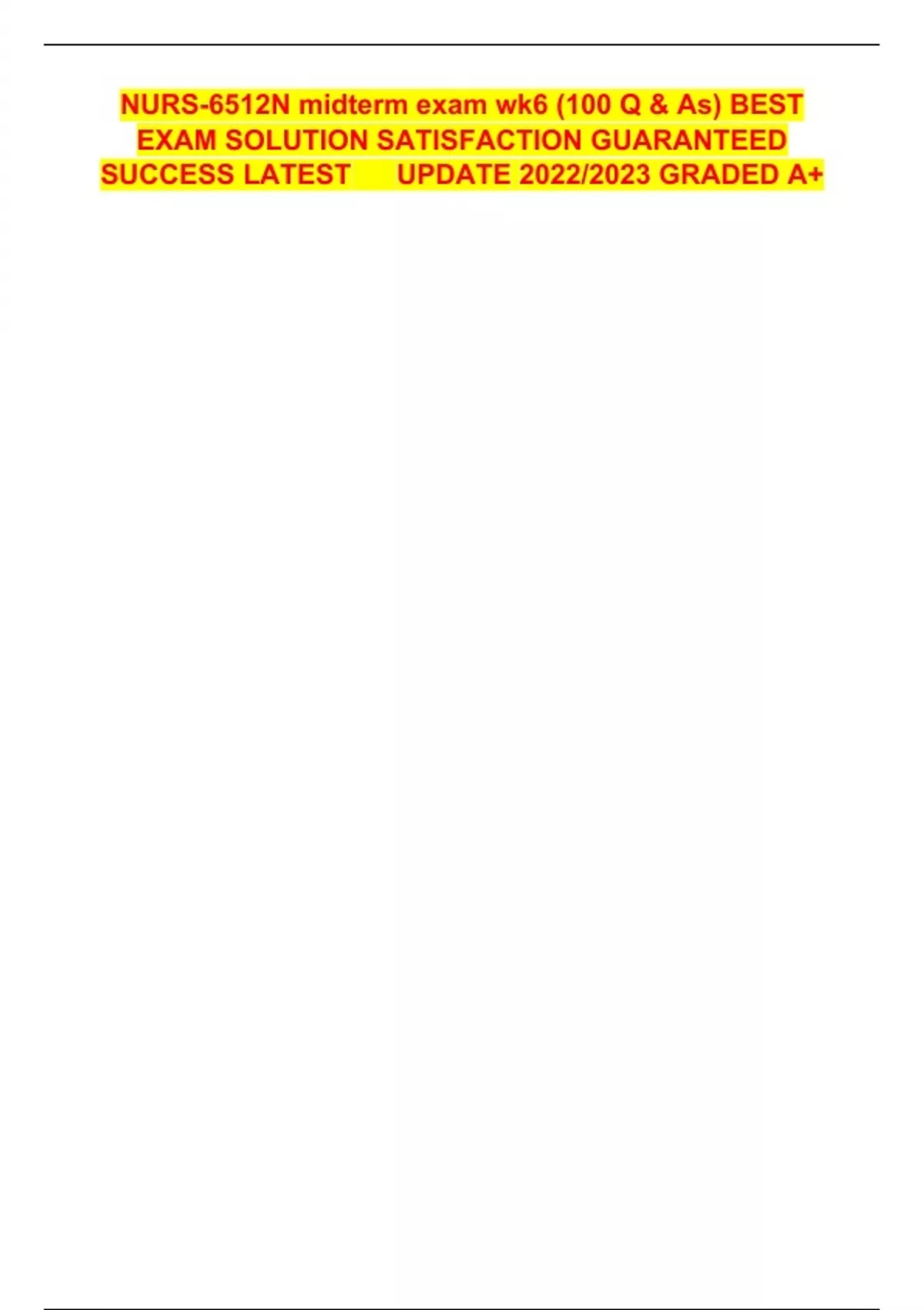 NURS-6512N midterm exam wk6 (100 Q & As) BEST EXAM SOLUTION SATISFACTION GUARANTEED SUCCESS LATEST UPDATE 2022/2023 GRADED A+