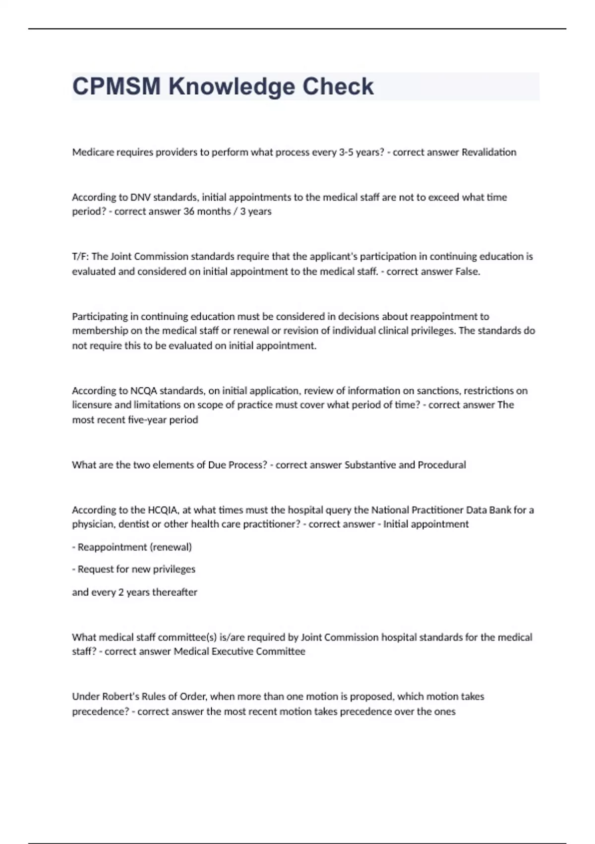 CPMSM Knowledge Check question n answer graded A+ 2023