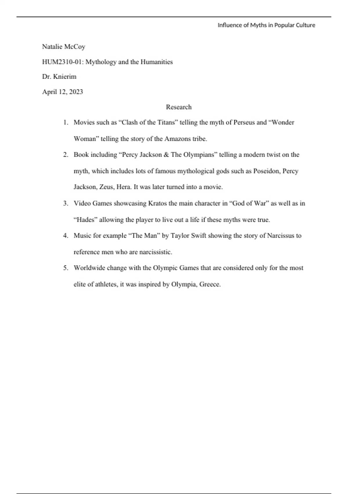 Lecture notes of 1 pages for the course HUM2310 at College Of Central Florida (Notes for class)