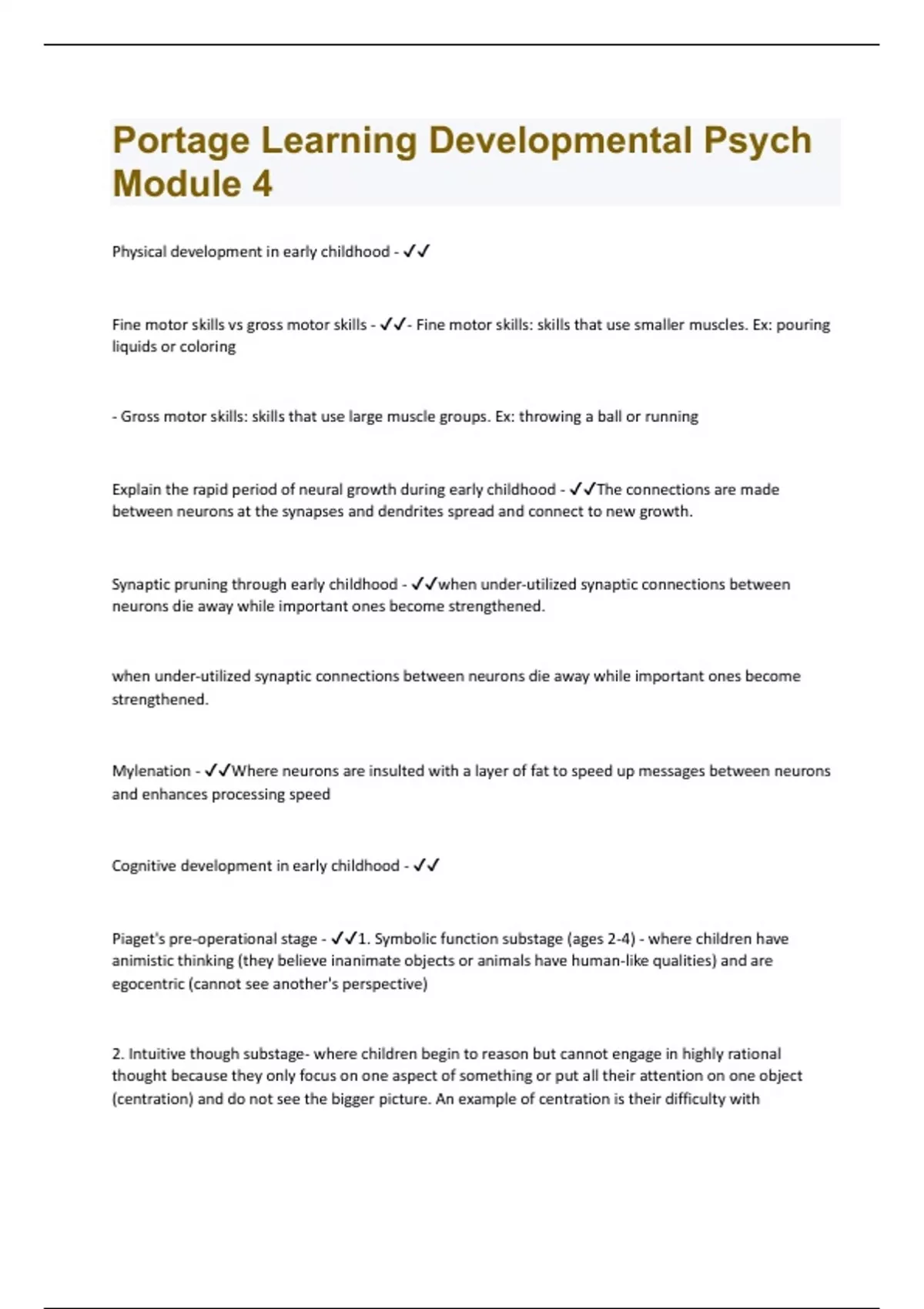 Portage Learning Developmental Psych Module 4 | Questions and Answers with complete solution