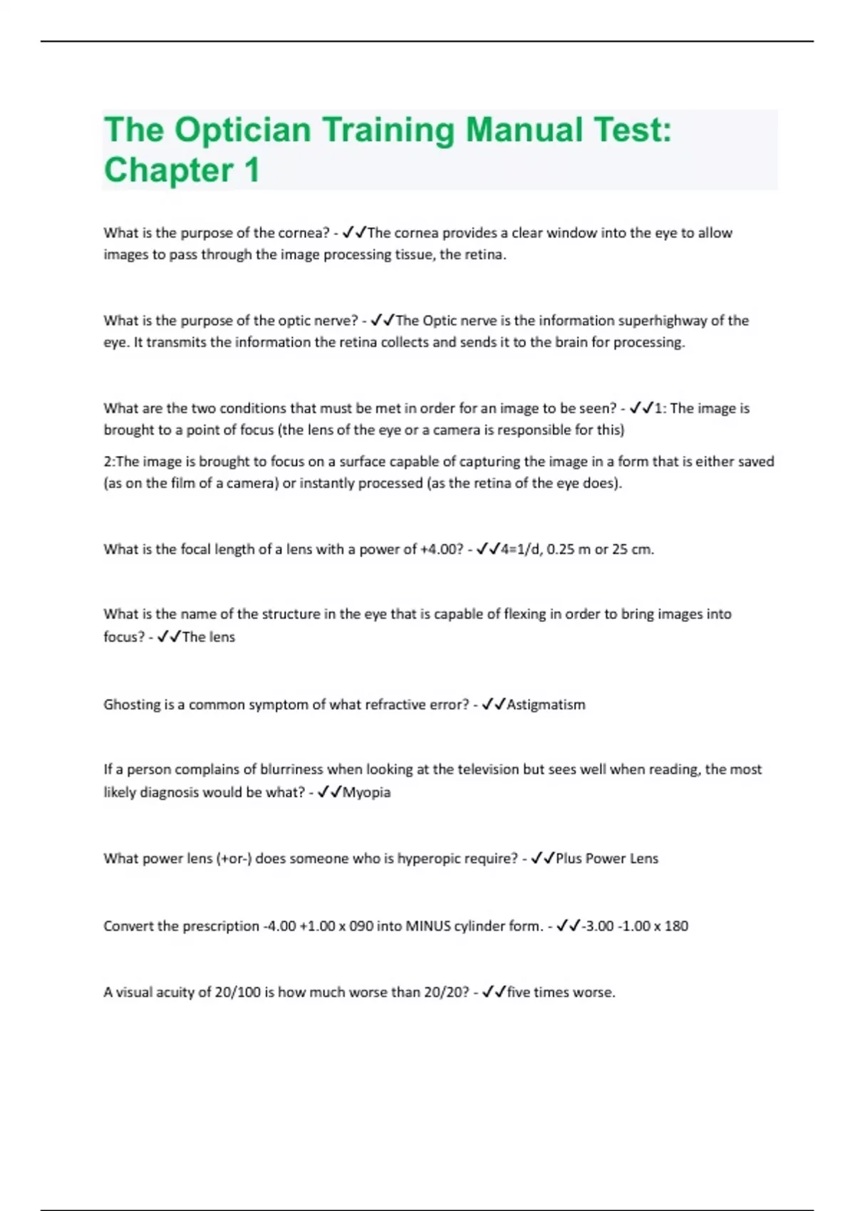The Optician Training Manual Test: Chapter 1 Rated 100% Correct!!