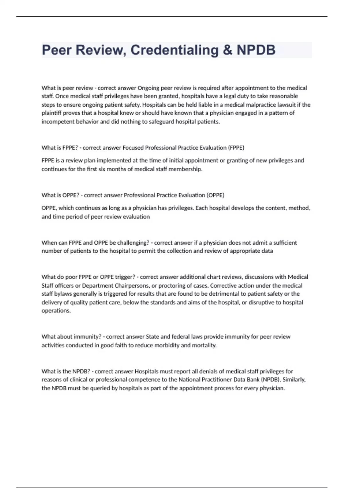 Peer Review, Credentialing & NPDB fully solved 2023 passed