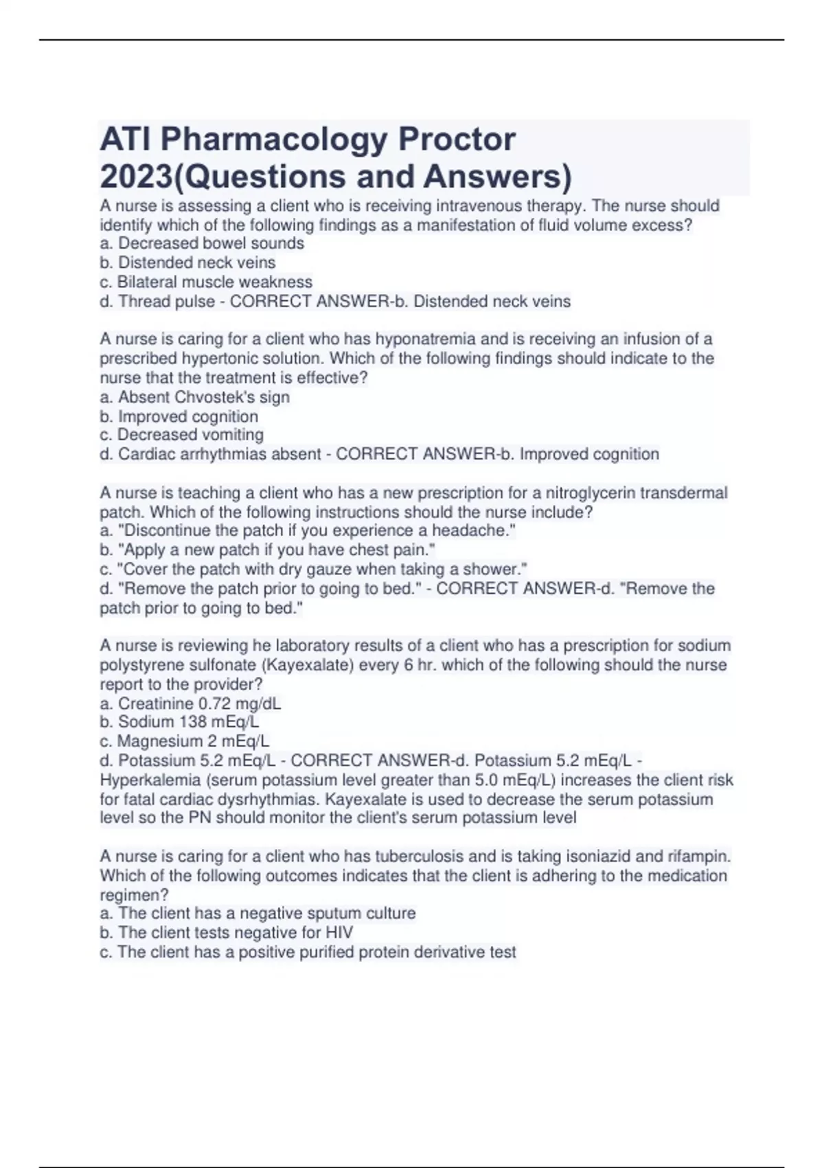 ATI Pharmacology Proctor 2023(Questions and Answers)