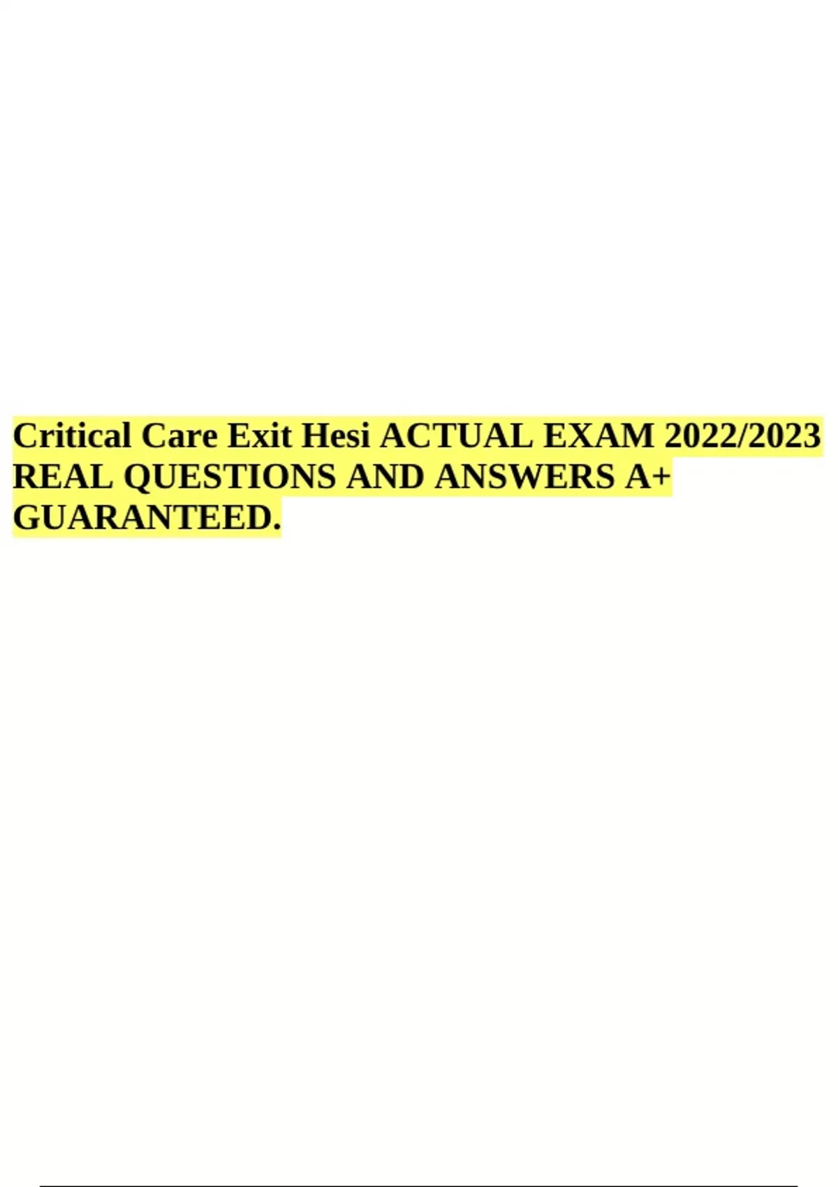 Critical Care Exit Hesi ACTUAL EXAM 2022/2023 REAL QUESTIONS AND ANSWERS A+ GUARANTEED