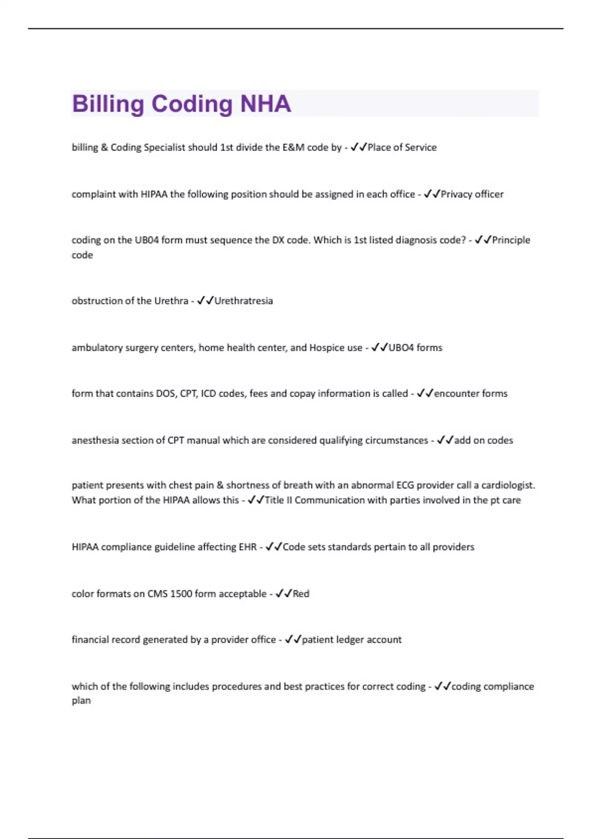 - Billing Coding NHA