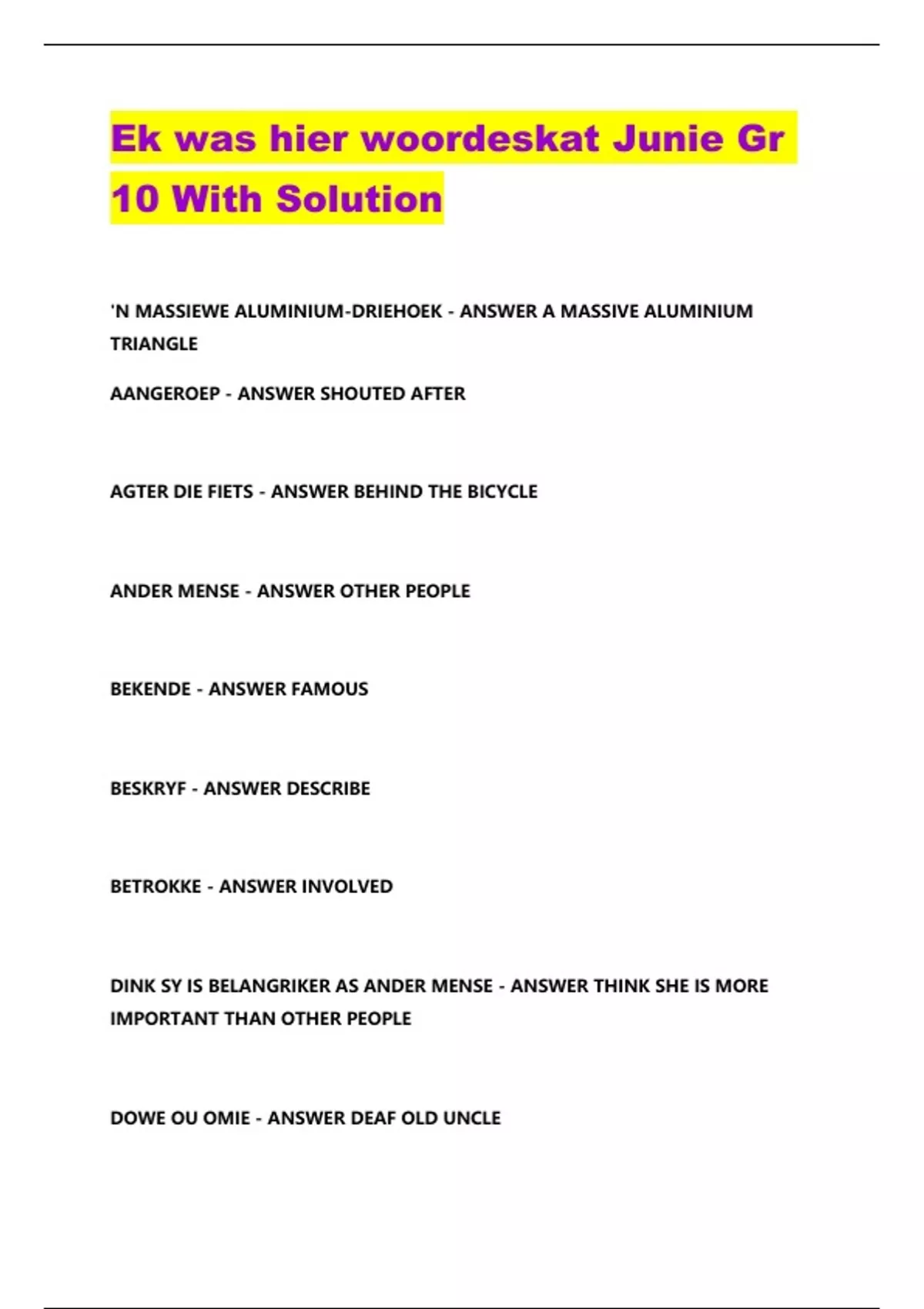 ek was hier woordeskat junie gr 10 with solution