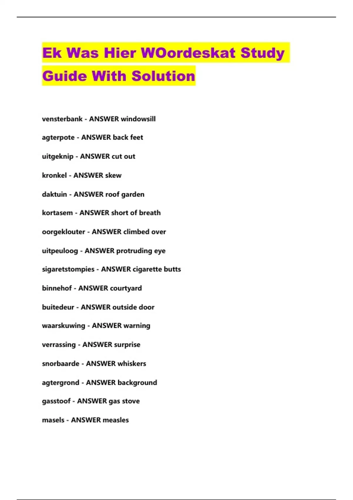 Ek Was Hier WOordeskat Study Guide With Solution...