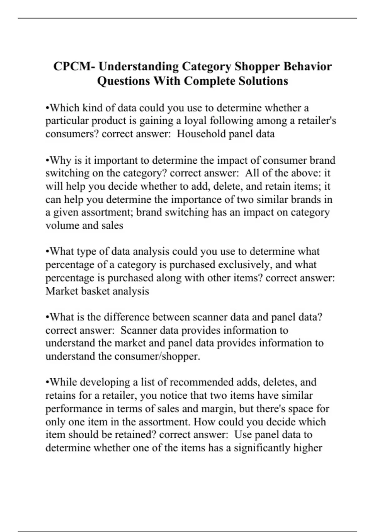 CPCM- Understanding Category Shopper Behavior Questions With Complete Solutions