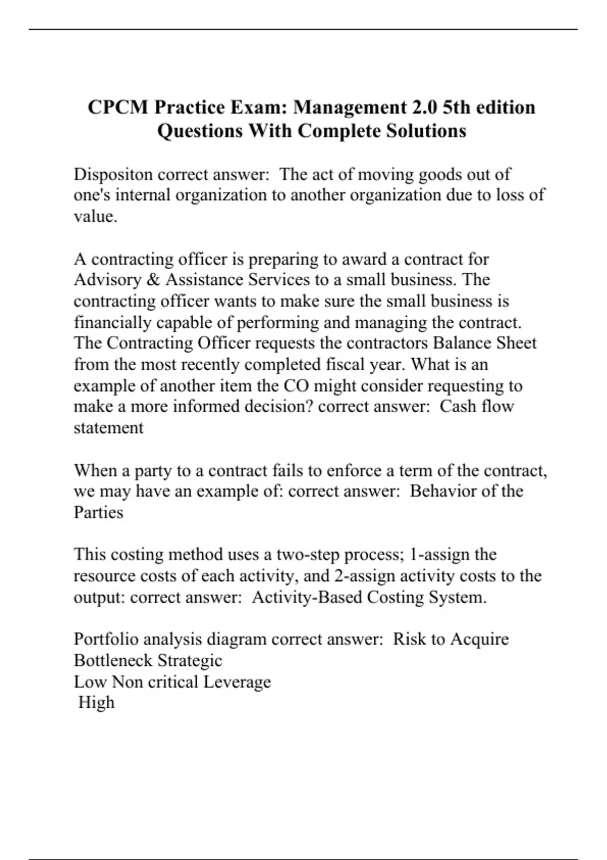 CPCM Practice Exam: Management 2.0 5th edition Questions With Complete Solutions