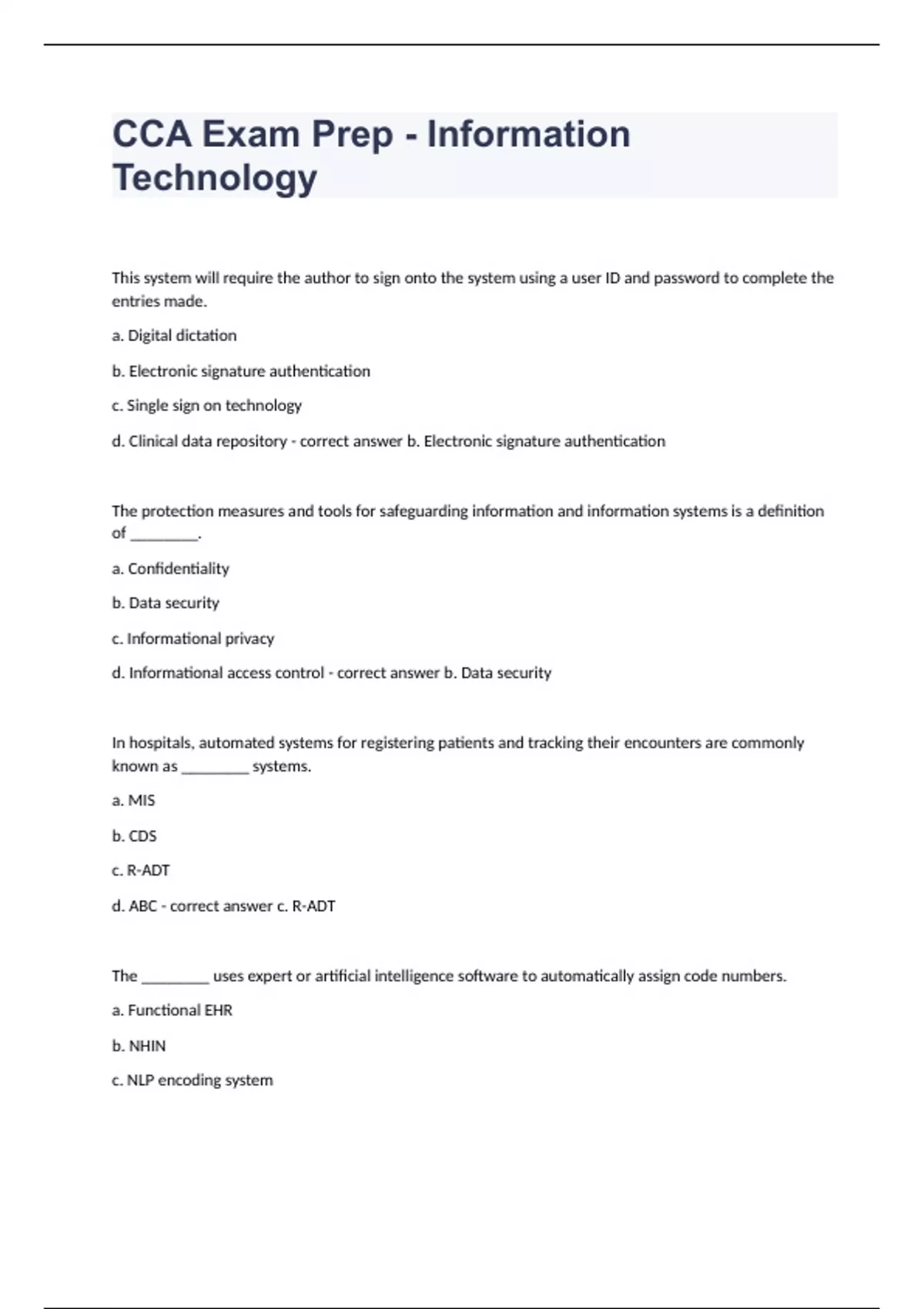 CCA Exam Prep - Information Technology fully solved 2023