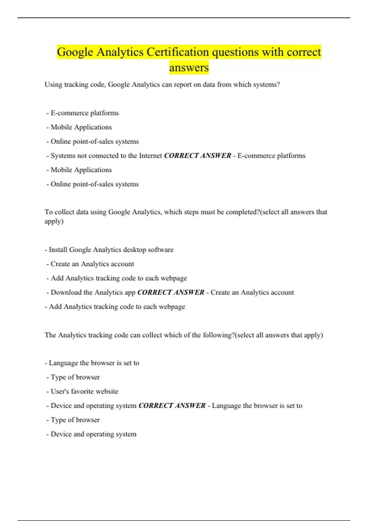 Google Analytics Certification Tests Bundle