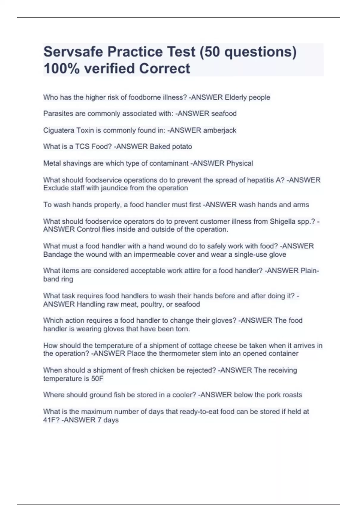 Servsafe Practice Test (50 questions) 100% verified Correct
