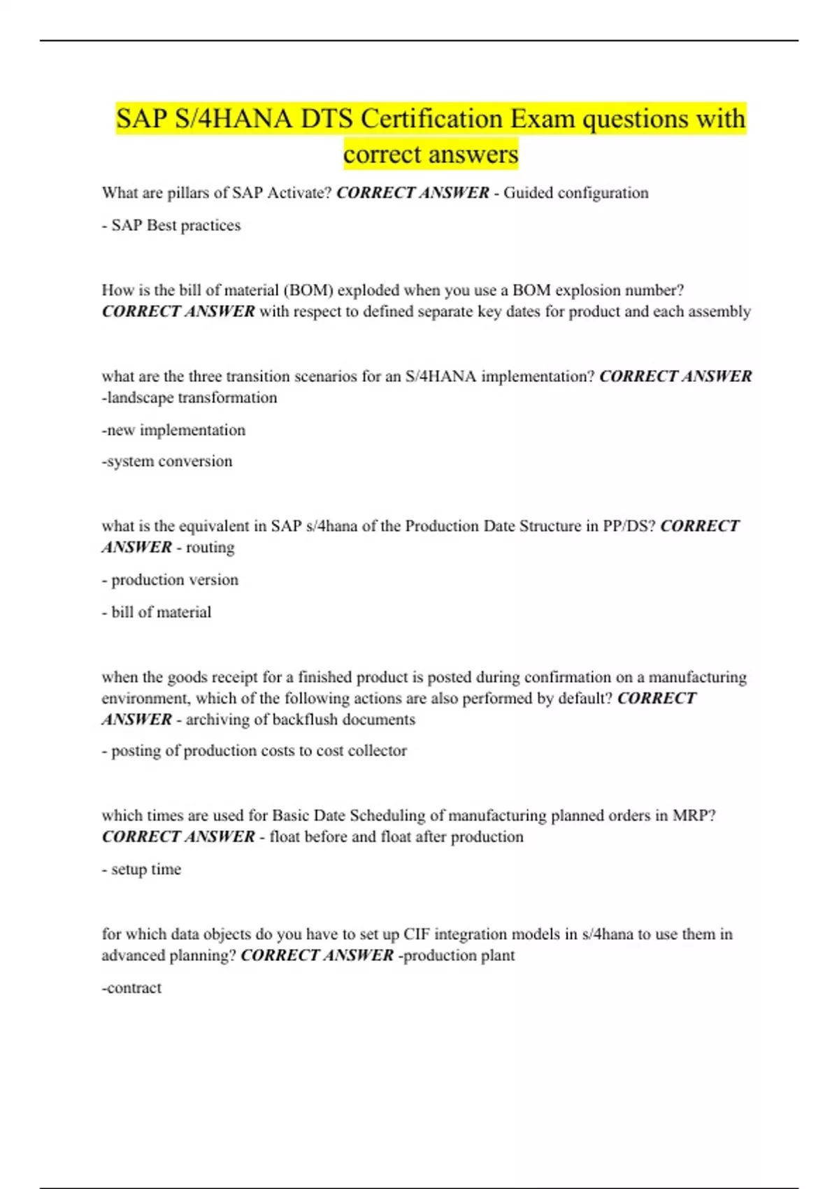SAP S/4HANA DTS Certification Exam questions with correct answers