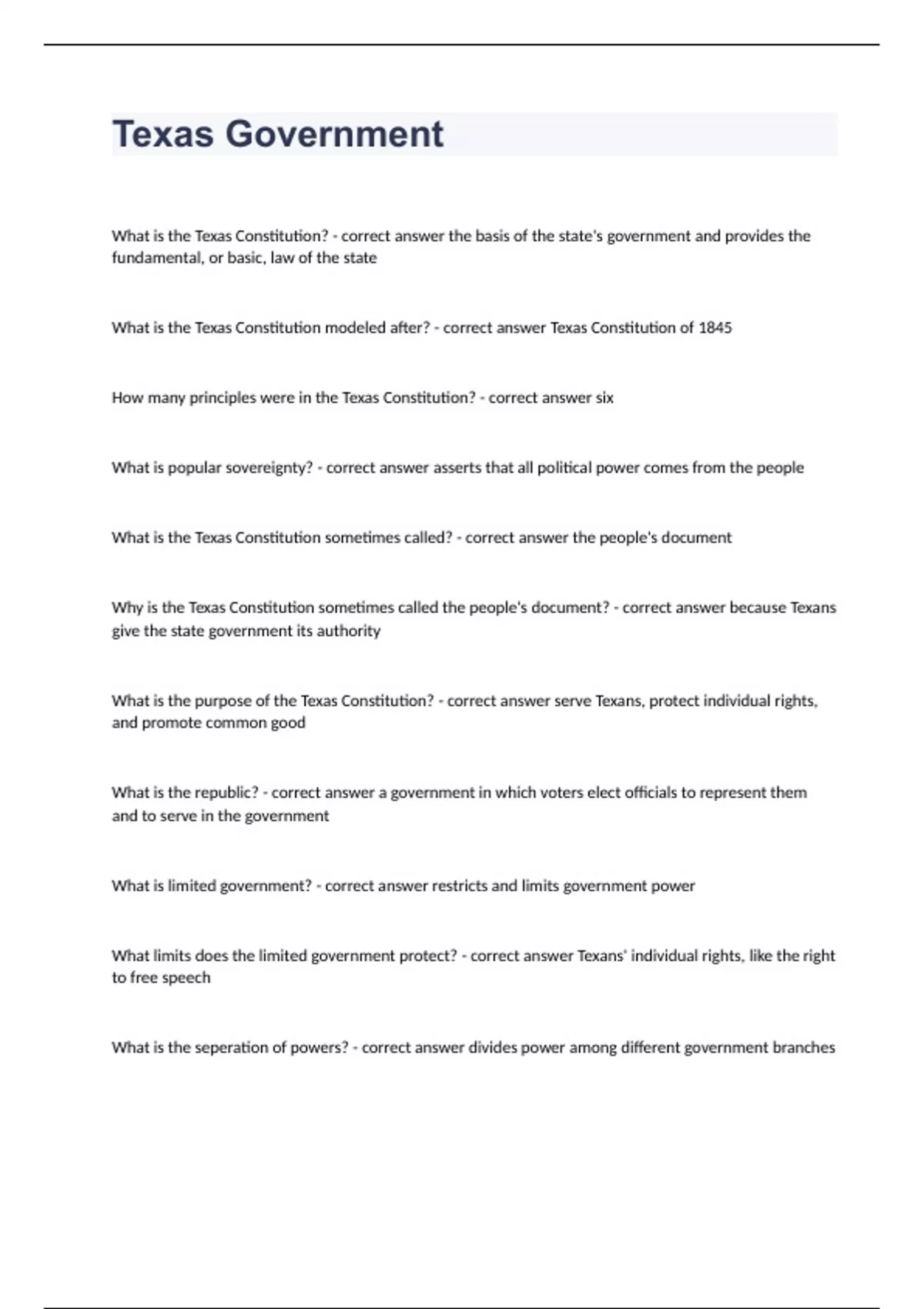Exam of 9 pages for the course Texas Government at Texas Government (Texas Government 2.)