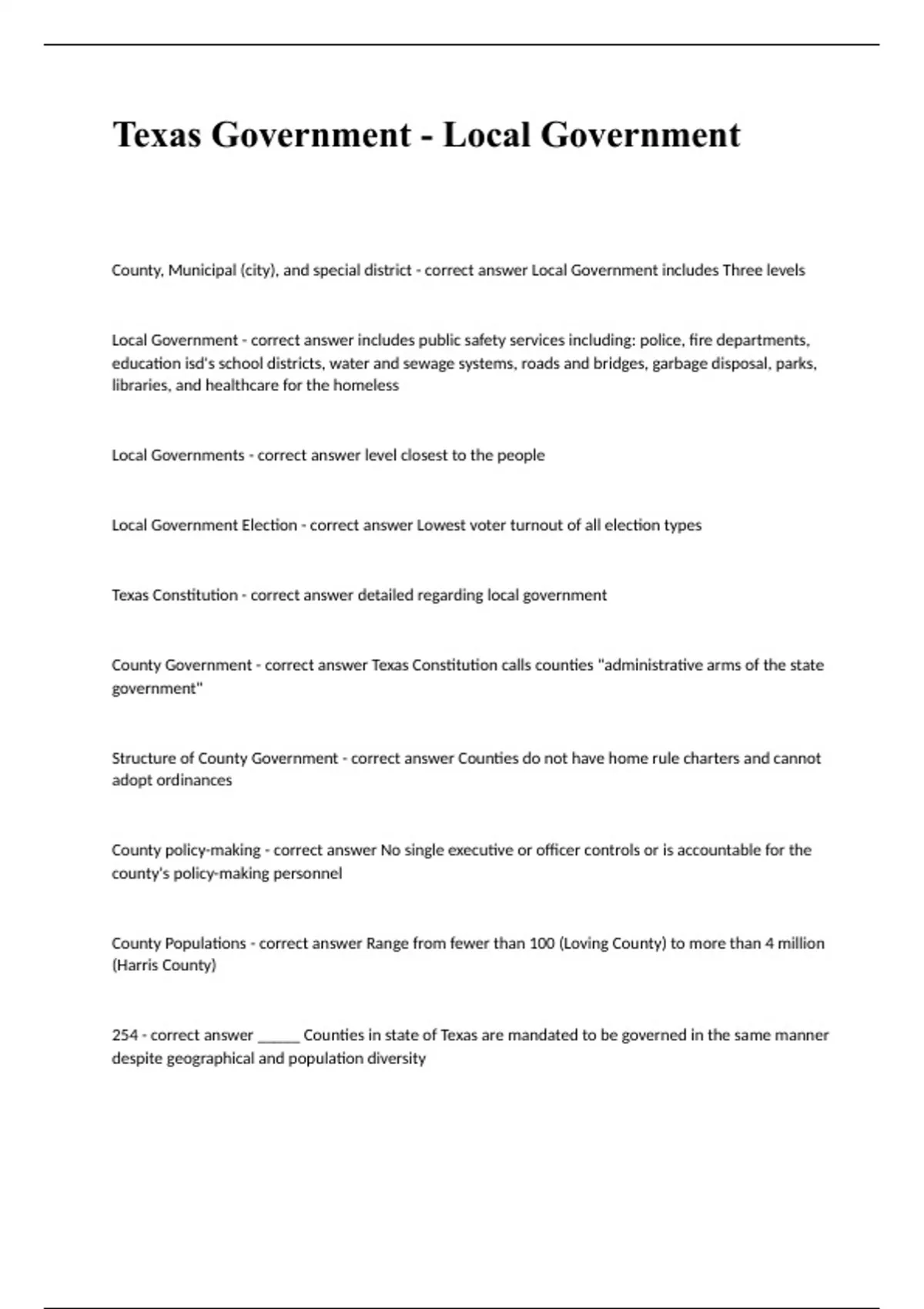 Texas Government - Local Government question with complete solution 2023