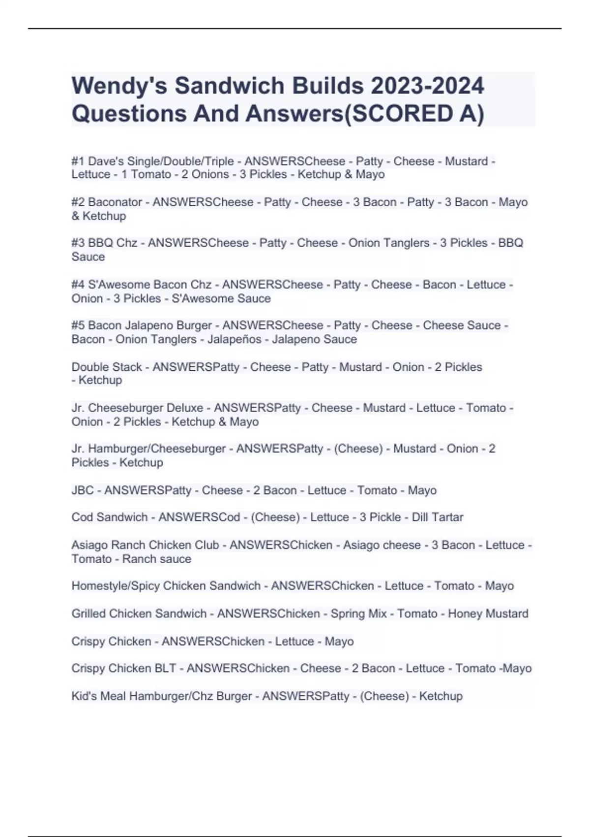 Wendy's Sandwich Builds Questions And Answers(SCORED A)