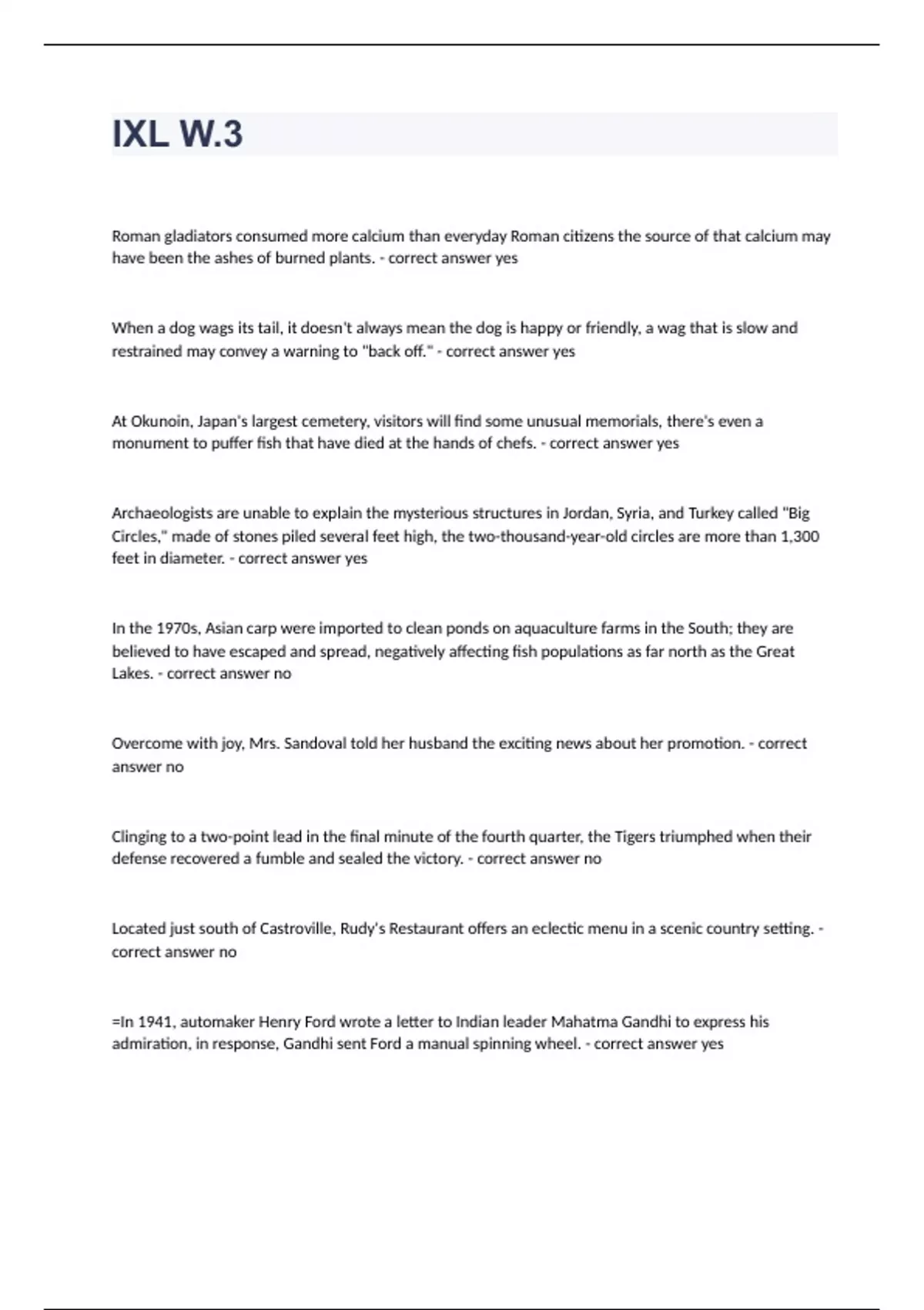 IXL W.3. question with complete solution graded A+ 2023 passed