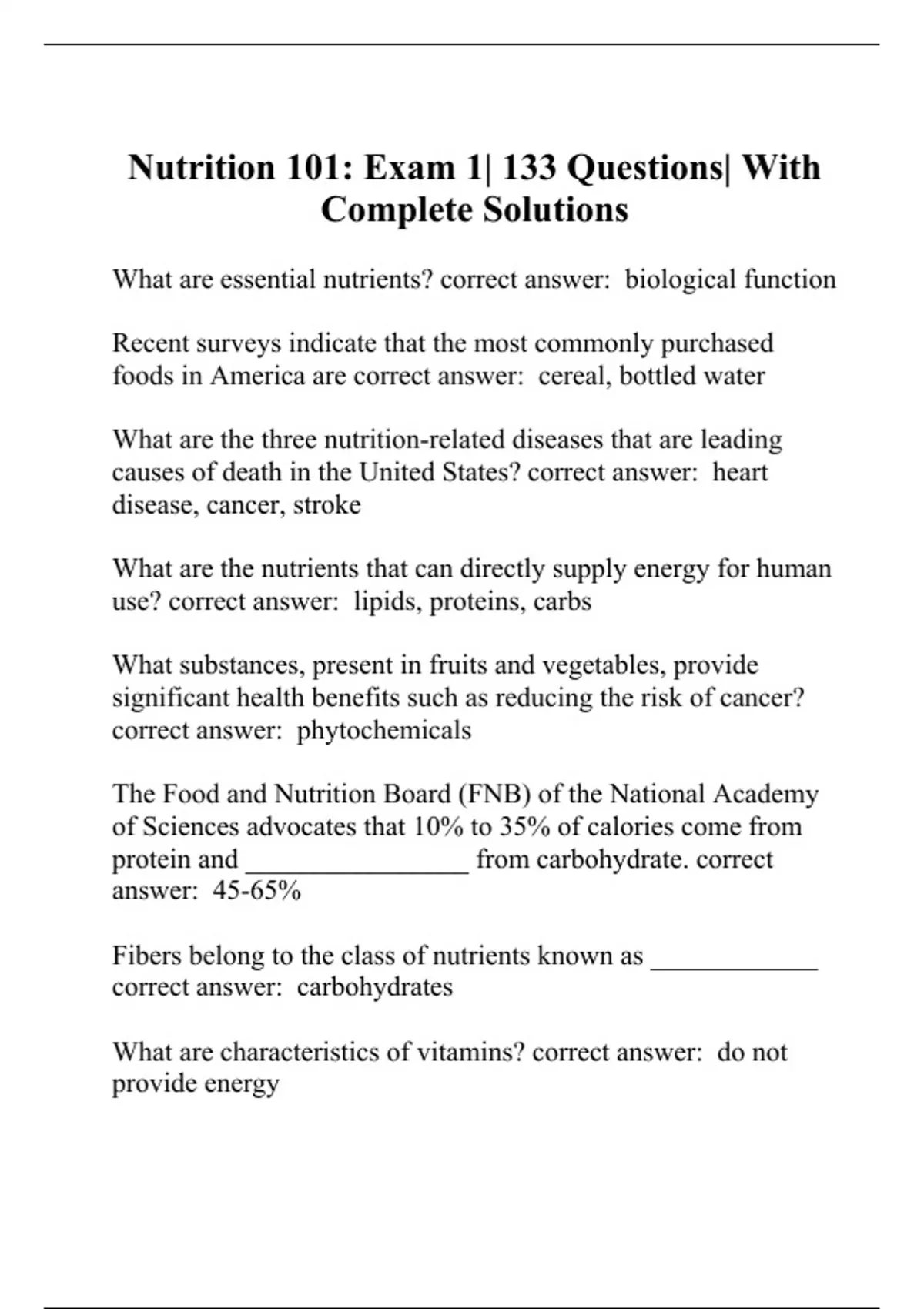 Nutrition 101: Exam 1| 133 Questions| With Complete Solutions