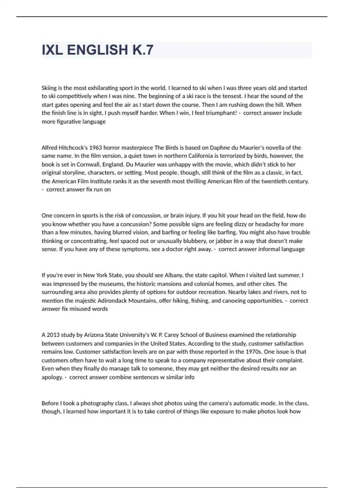IXL ENGLISH K.7 question and answers graded A+ 2023