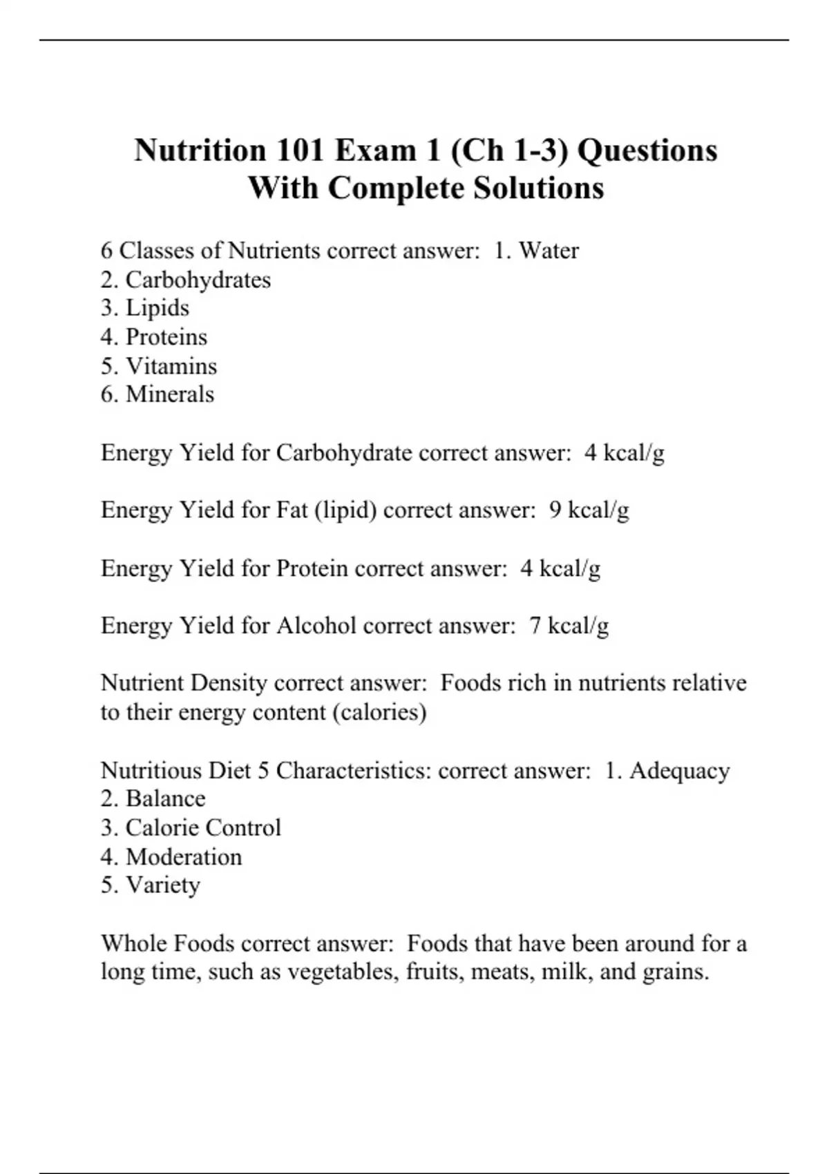 Nutrition 101 Exam 1 (Ch 1-3) Questions With Complete Solutions