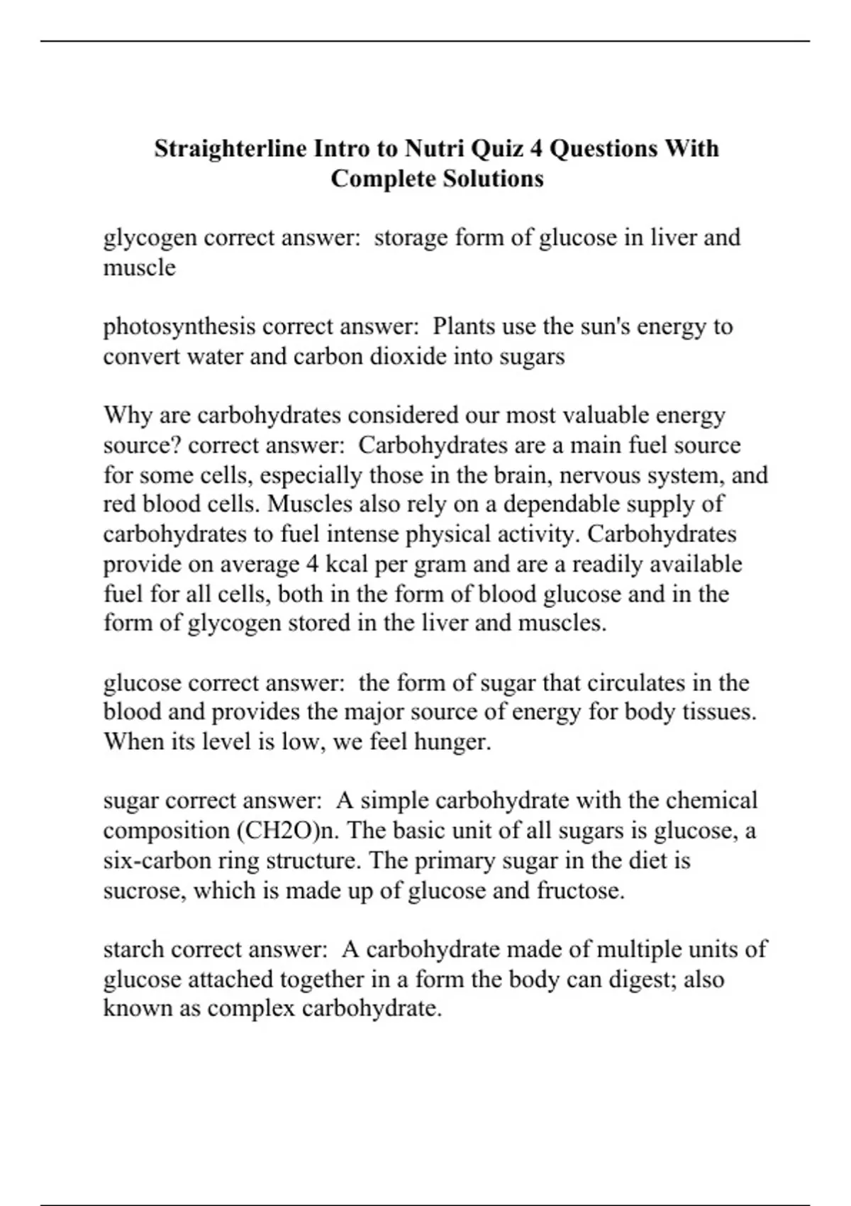 Straighterline Intro to Nutri Quiz 4 Questions With Complete Solutions.