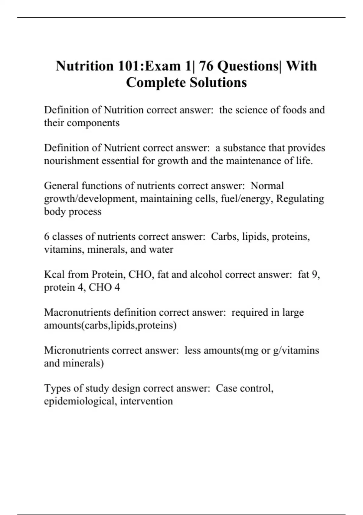 Nutrition 101:Exam 1| 76 Questions| With Complete Solutions